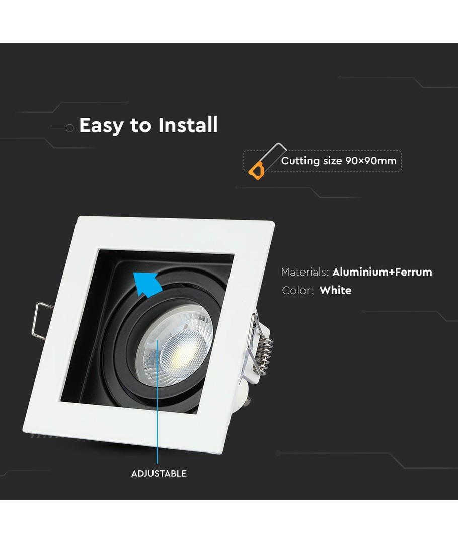 Uten lyskilde, IP20, Hull: 7,4x7,4 cm, Mål: 9,9x9,9 cm