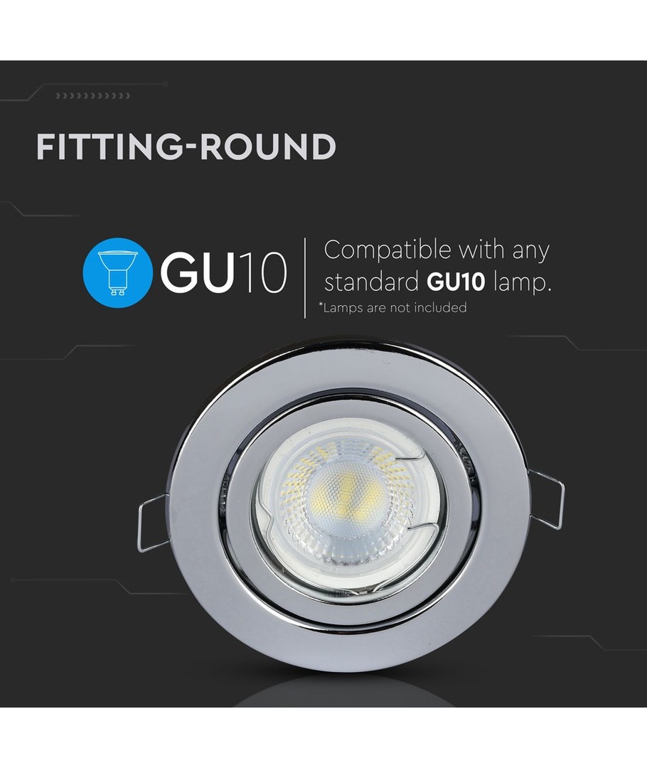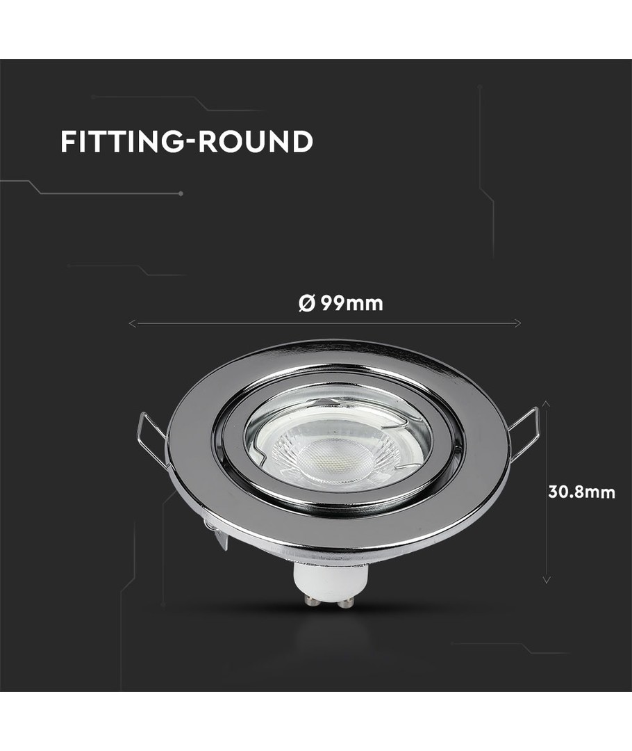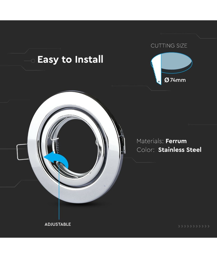 Det rustfrie stål GU10 huset med krom finish kombinerer praktisk anvendelighet med estetisk appell.