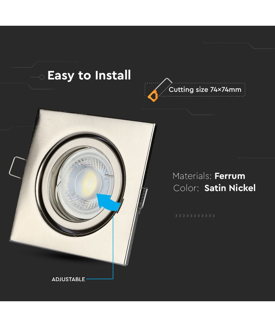 GU10 Lampe - Kvadratisk i satin nikkel finish, som er en moderne og stilfull belysningsløsning.