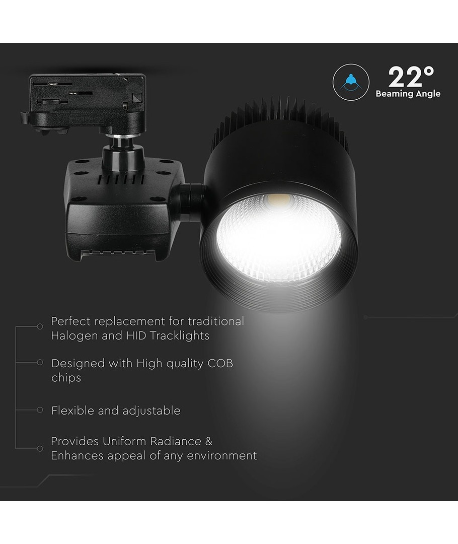 Oppgrader belysningen din med denne COB Skinnespotten, som kombinerer høy effektivitet og stilren design. Med en effekt på 40W og en lysstyrke på 2600 lumen, vil denne skinnespotten gi deg den perfekte belysningen for ethvert arbeidsmiljø. Det fokusert lys på 22 grader sikrer et kontrollert og presist lysbilde.