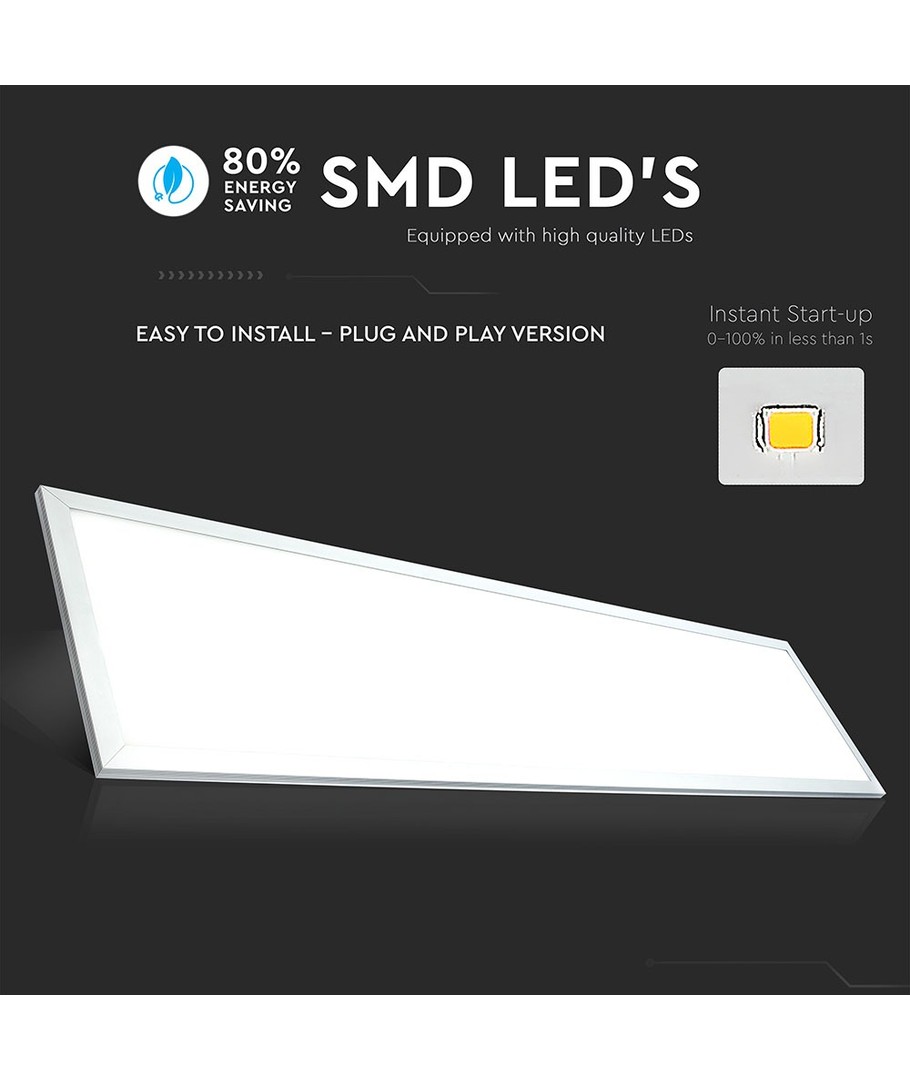 Med en effekt på 45W, gir dette LED-panelet en imponerende lysstyrke på 3600 lumen, noe som sikrer en strålende belysning for et stort spekter av rom. Den høye lysspredningen på 120 grader gir en jevn fordeling av lyset, slik at hele rommet blir badet i lys.