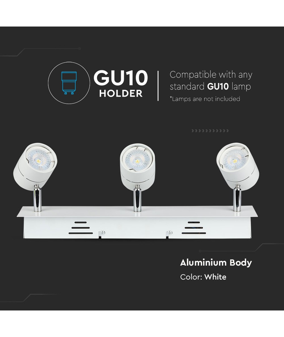 Til GU10, 121 x 121 mm, IP20 innendørs, kan males