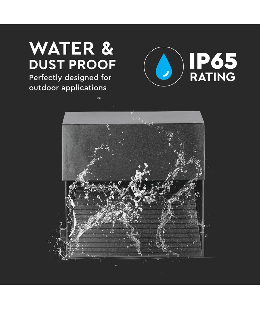 Med en IP65-klassifisering, er denne trappebelysningen perfekt for utendørs bruk. Den tåler både vannsprut og regn, noe som gjør den ideell for alle værforhold.