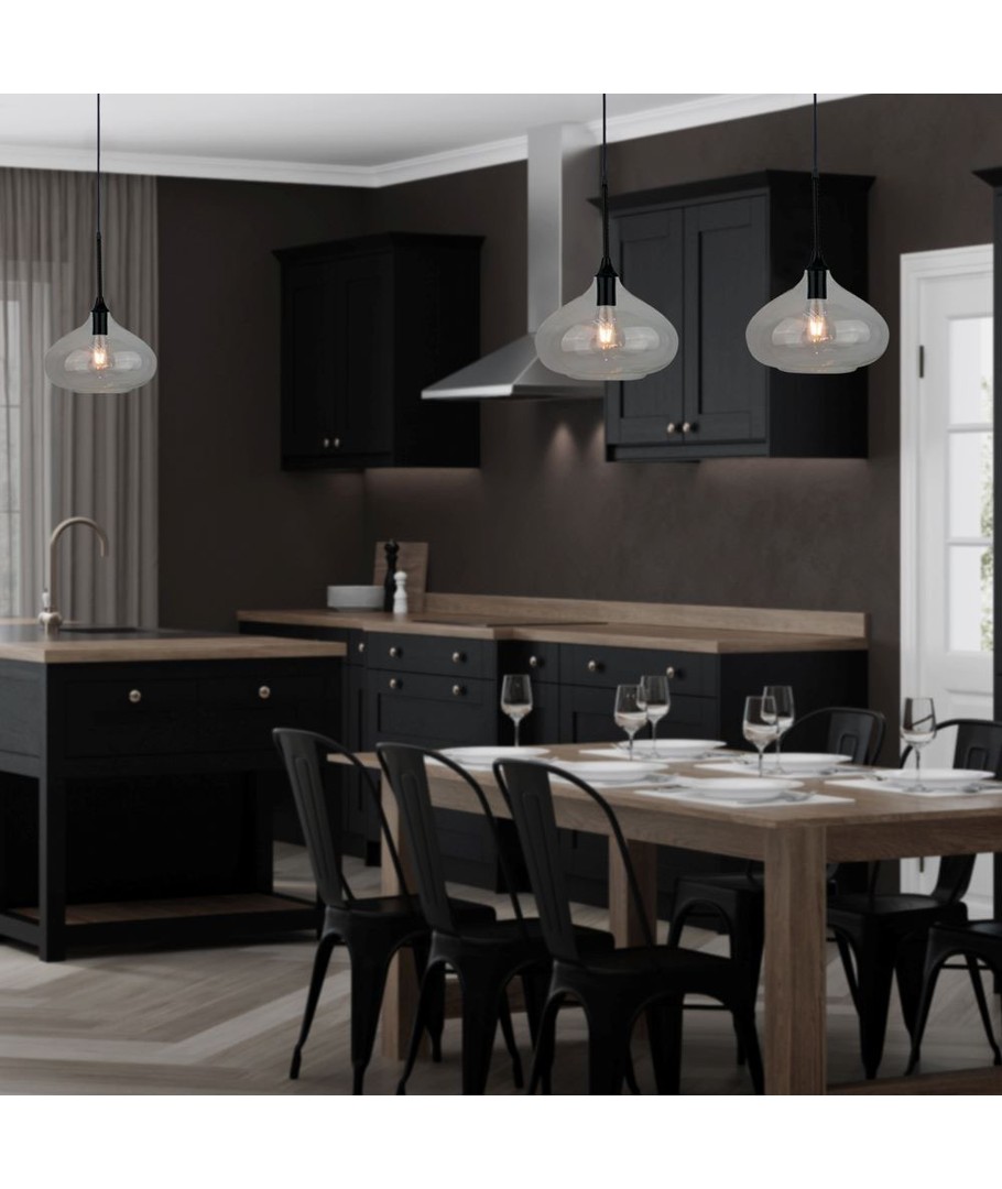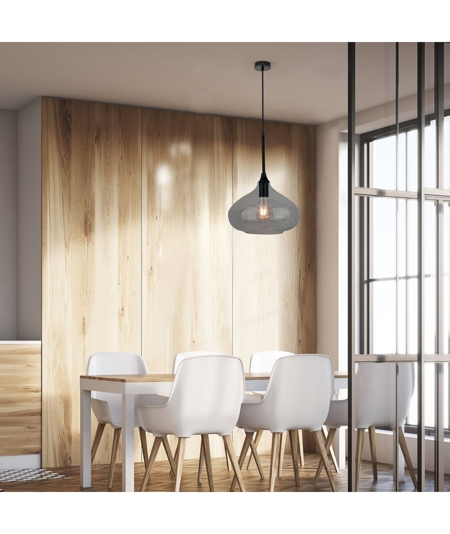 Moderne Glas-Glans-sort glas pendellampe Ø280-E27 kombinerer stil og funksjonalitet i elegant design.