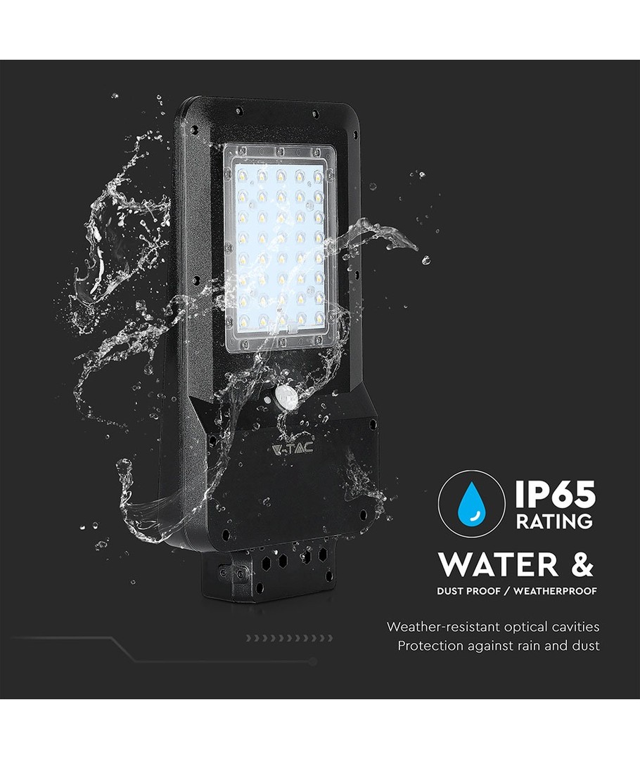 Med sin robuste svart-hus-design er lampen både stilren og funksjonell. IP65-klassifiseringen sikrer at den er motstandsdyktig mot tøffe værforhold, noe som gjør den til et pålitelig valg uansett sesong. Gjennom integreringen av en solcelle og lyskilde, trenger du ikke bekymre deg for komplekse installasjoner.