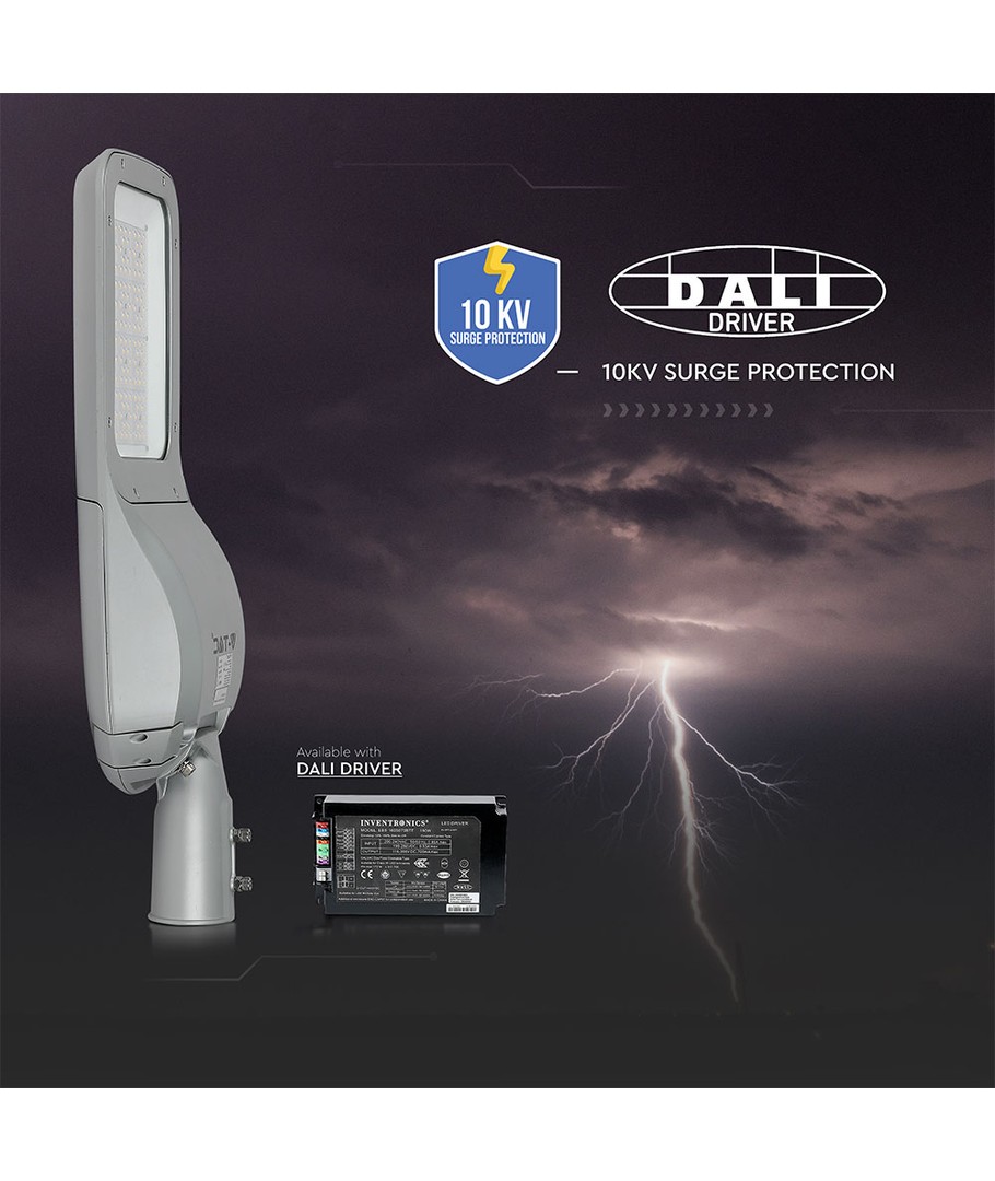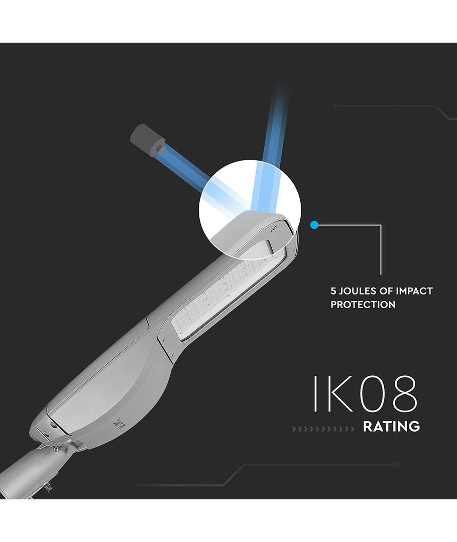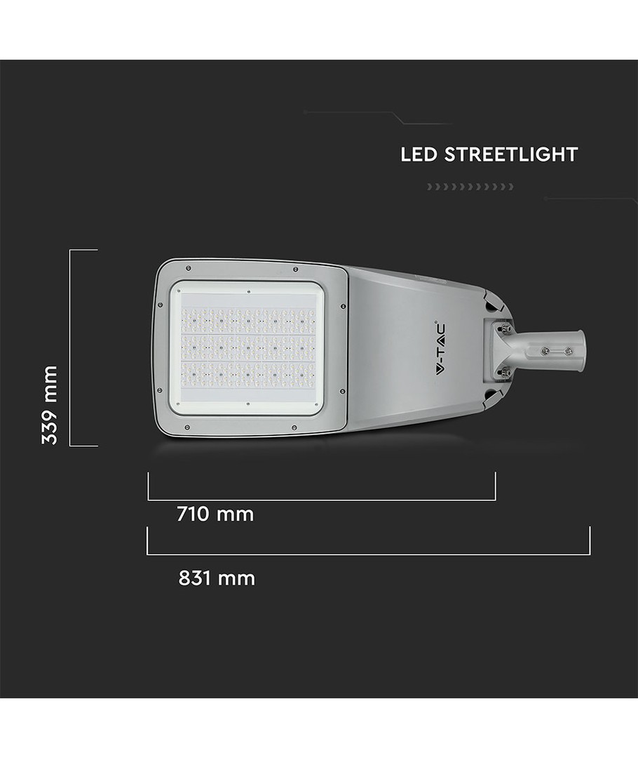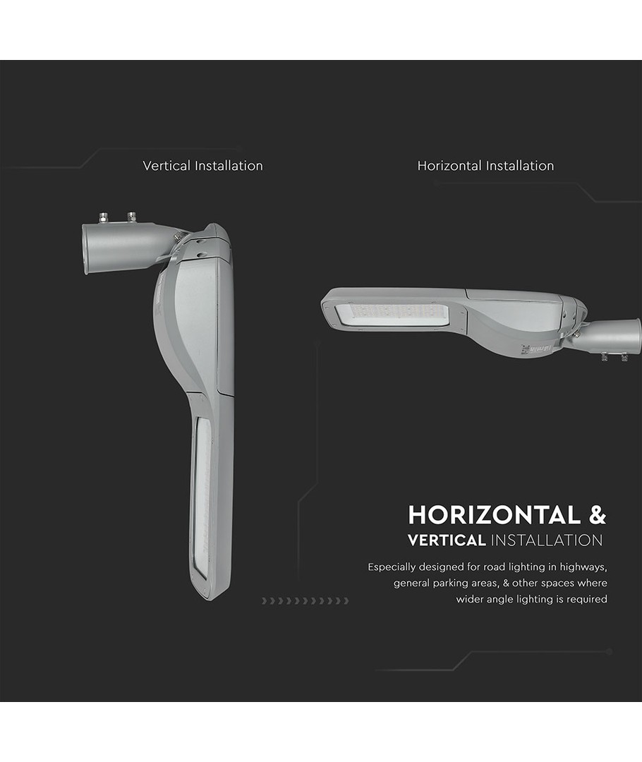 Denne 160W LED gatebelysningen gir en utmerket lysstyrke på hele 20800 lumen. Med en høy lysspredning på 150/80 grader sikrer denne lampen jevn lysfordeling over større områder, noe som gjør den ideell for uteområder og gater.