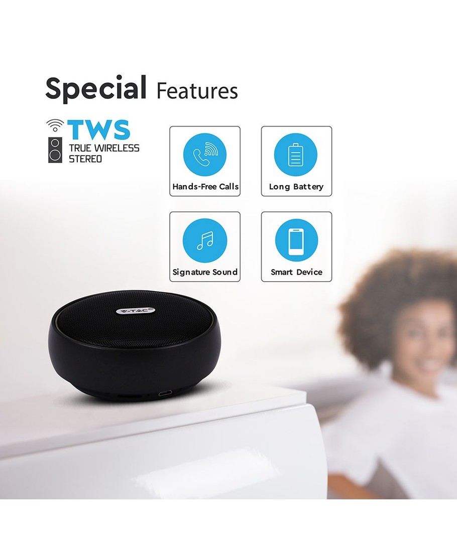 - TWS Funksjon: True Wireless Stereo for en komplett stereoopplevelse ved å koble to høyttalere trådløst.