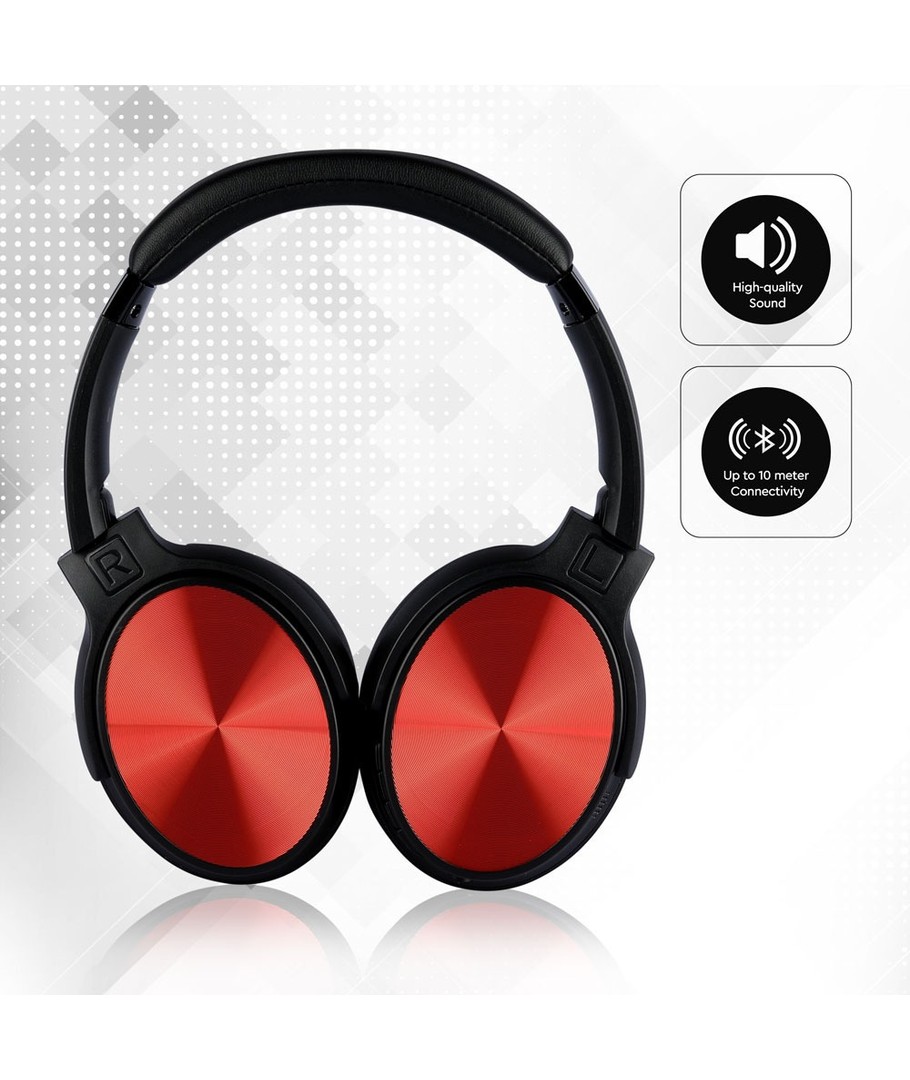 Bluetooth-hodetelefoner i en stilfull rød farge, designet for å levere fantastisk lyd og lang batteritid.