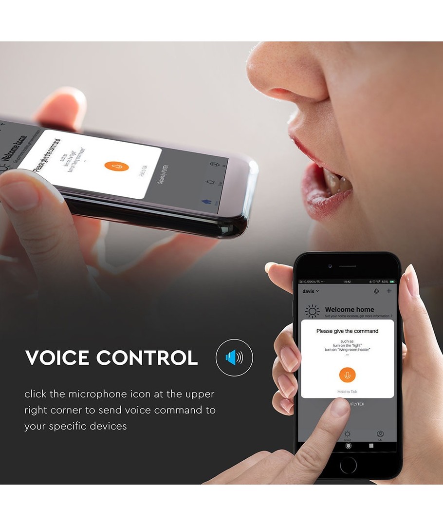 - Talestyring: Integreres med både Alexa og Google Home for håndfri kontroll.
