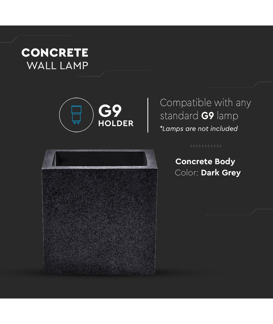 G9 firkantet vegglampe i betong - Mørkegrå, IP20, uten lyskilde samsung Utvid