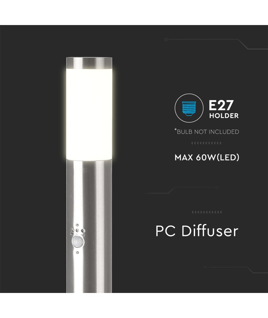 - PIR-Sensor: Innebygd sensor, som tenner lyset ved bevegelse innenfor 2-8 meter.