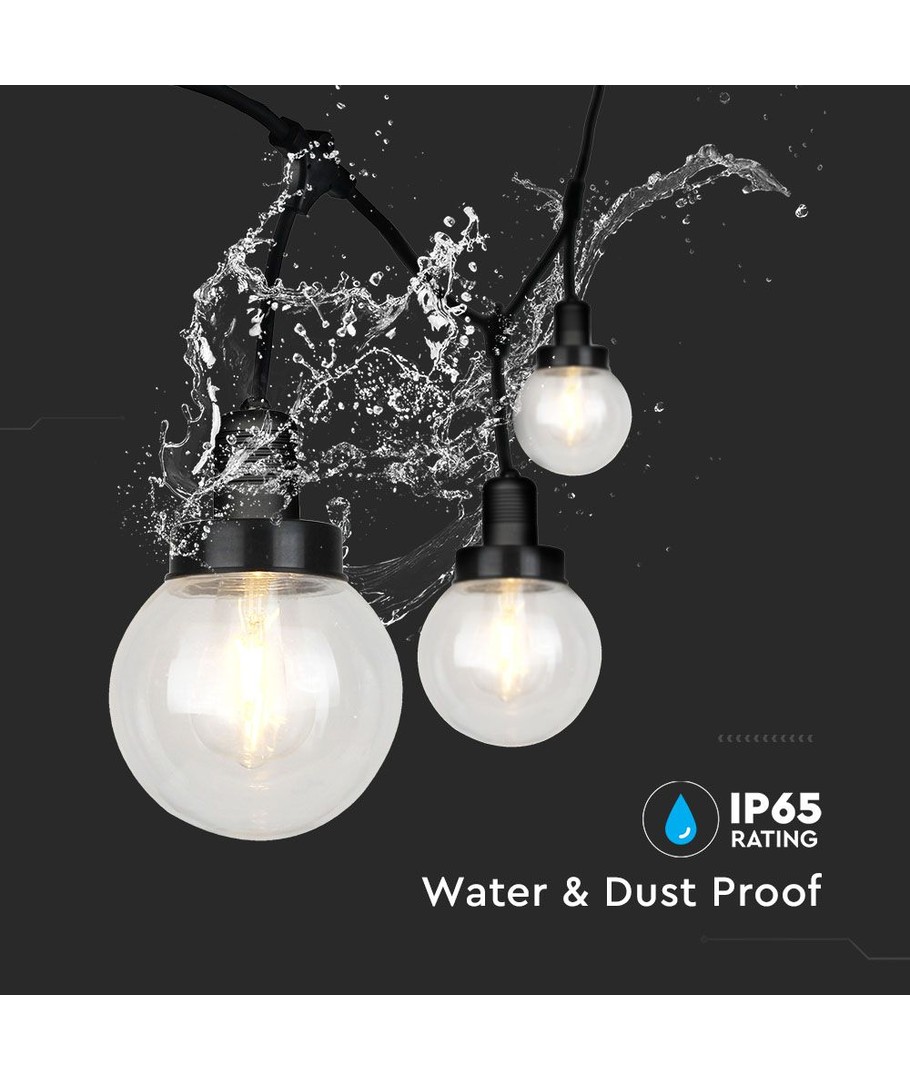 Den 3m E27 lyskjede med 6 kupler er en stilfull og funksjonell løsning for utendørs belysning, perfekt for å skape en hyggelig atmosfære i hagen eller på terrassen.