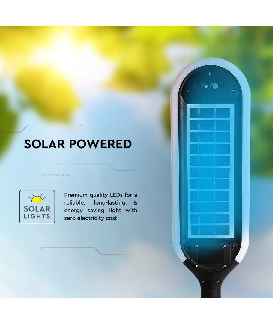 Med sitt elegante hvitt og sort hus, passer dette pullert lyset sømløst inn i enhver stil, samtidig som det gir pålitelig belysning. Gjør enhver utendørs plass mer innbydende og trygg med vårt pålitelige og estetisk tiltalende LED solcelle pullert lys.