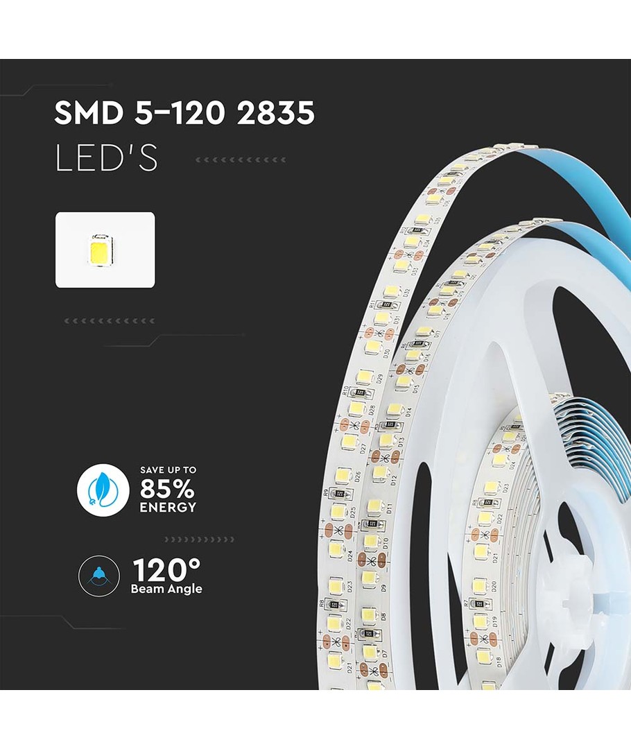 Denne høykvalitets 2835 LED Strips Lys gir deg den perfekte kombinasjonen av effektivitet og estetisk eleganse. Med en lysdekning på 120 grader, sikrer den en jevn og bred fordeling av lyset, ideell for belysning i både hjem og profesjonelle omgivelser.