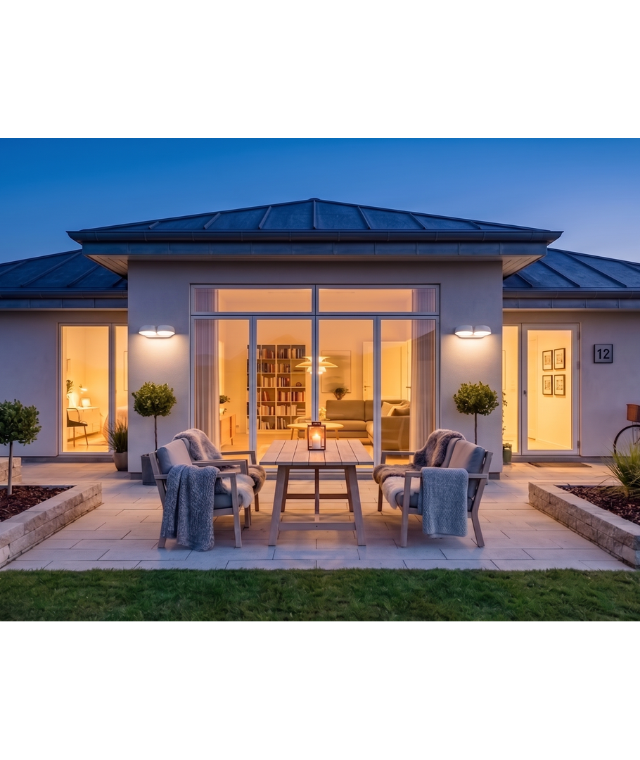 Vegglampen har en IP65-klassifisering, som betyr at den er beskyttet mot støv og vannstråler, noe som gjør den perfekt for utendørs bruk. Den robuste utformingen sørger for at den tåler værpåvirkninger uten problemer, mens den integrerte lyskilden sikrer langvarig ytelse.