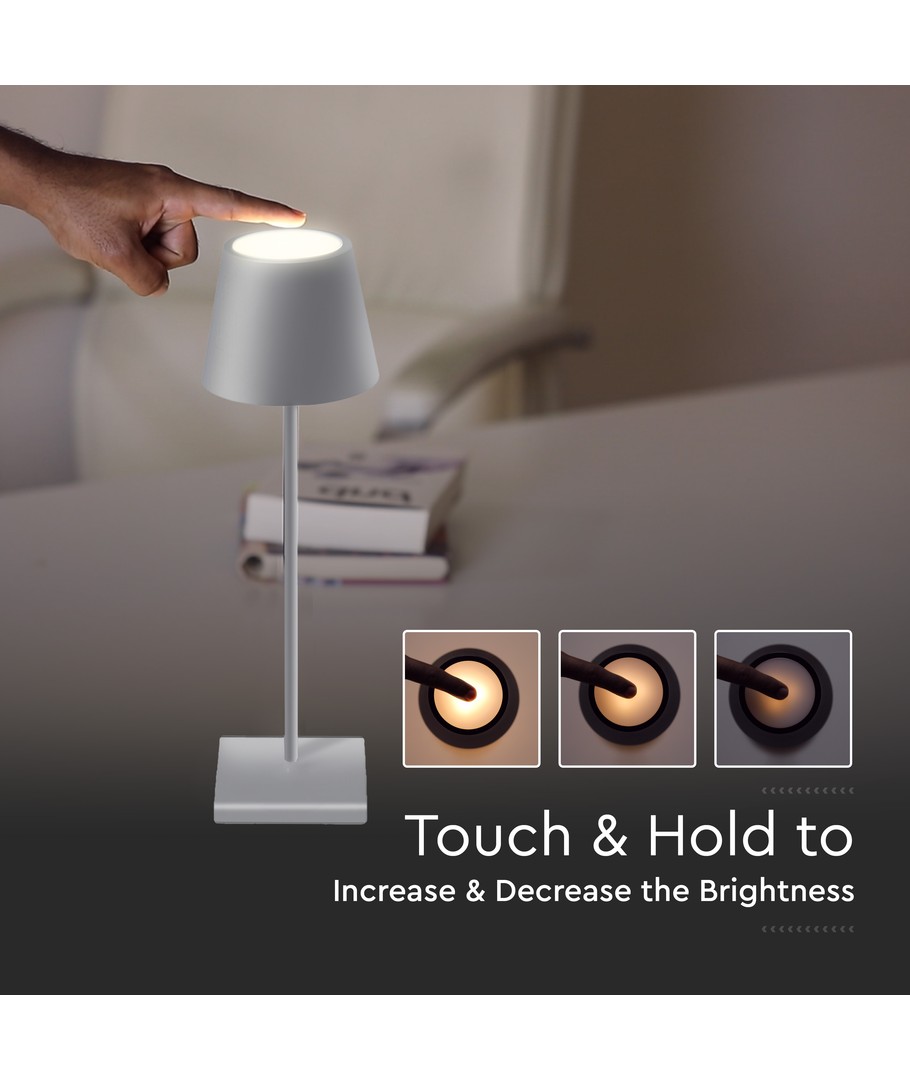 Lampen er også oppladbar, noe som gjør at du kan bruke den uavhengig av stikkontakter – ideelt for fleksibel bruk i ulike rom.