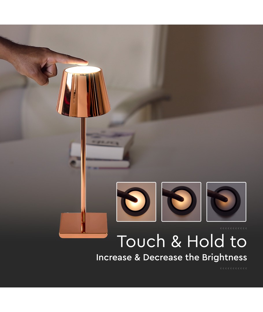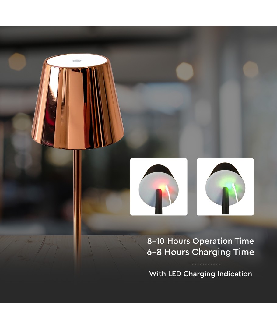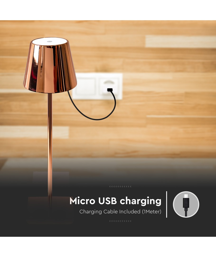 Oppdag den perfekte belysningen for ethvert rom med vår elegante 3W LED Oppladbar Bordlampe. Lampen kombinerer moderne teknologi med et stilfullt gull hus som gir et sofistikert preg til ditt interiør.