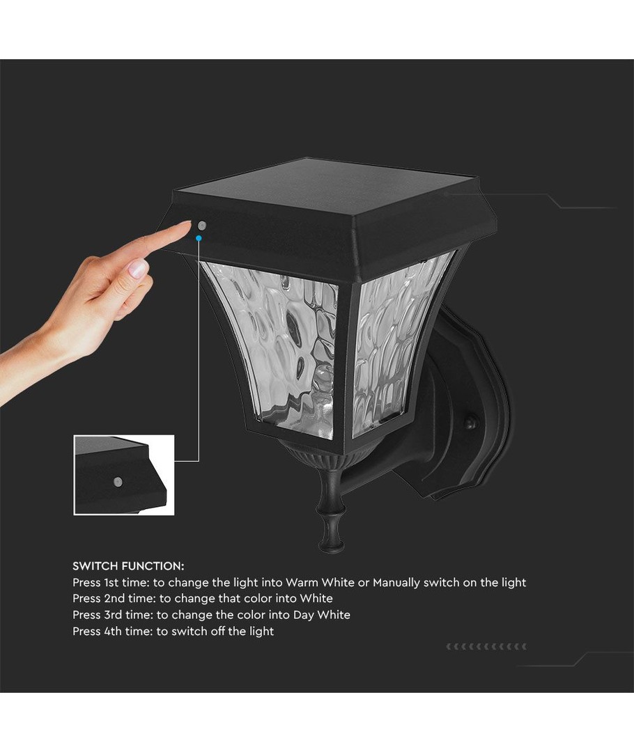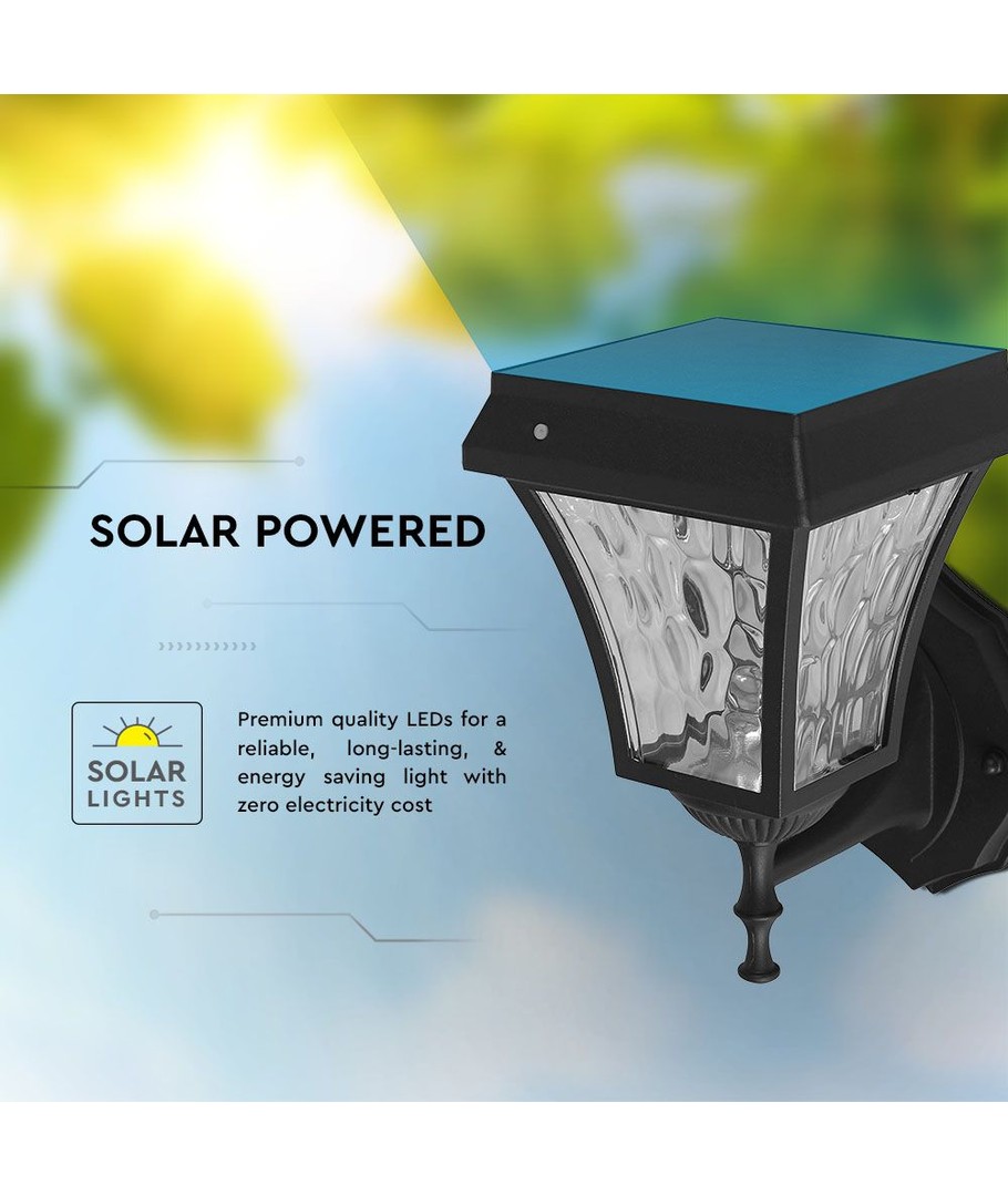 Velg vår LED solcelle vegglampe for å kombinere effektiv belysning med moderne design, og nyt et trygt og vakkert opplyst uteområde året rundt.