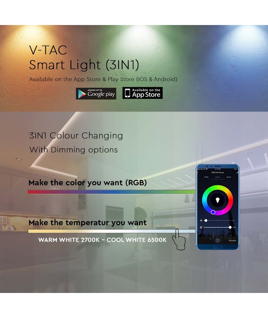 - CCT 3i1+RGB: Fleksible fargealternativer med kombinert hvitt og RGB-lys gir deg uendelige muligheter for belysning.