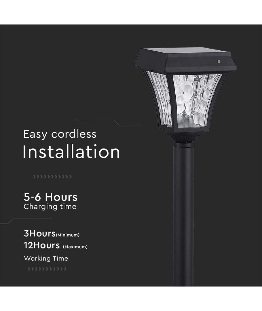 Gjør hagen din lysere og mer innbydende med vår LED solcelle hage lampe i matt svart. Denne stilige og funksjonelle lampen er en del av den anerkjente V-Tac Pro serien, kjent for sin holdbarhet og kvalitet. Med en energibesparende effekt på 2W og en lysstyrke på 110 lumen, vil denne lampen effektivt lyse opp uteområdet ditt.