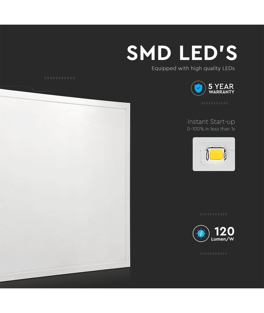 Panelet er en del av den anerkjente V-Tac Pro serien som tilbyr 5 års produsentgaranti. Takket være den integrerte LED-teknologien av høyeste kvalitet, kan du forvente en lang og pålitelig levetid på opptil 30.000 timer, med minimal reduksjon i lysstyrke. Dette er kombinert med en profesjonell driver og god kjøling for stabil og sikker drift.