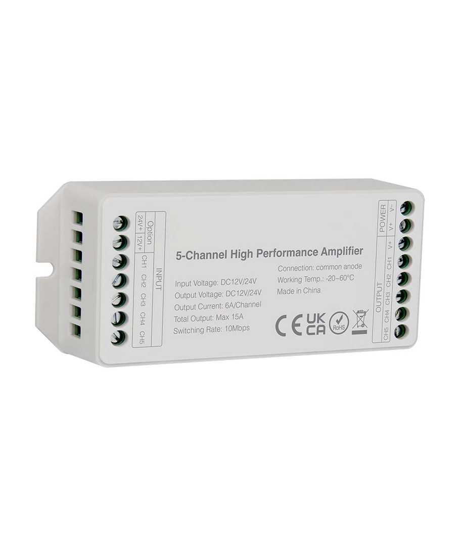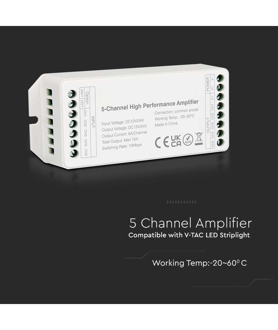 EN: VT-2435 5 CHANNEL AMPLIFIER er en effektiv forsterker designet for LED belysningssystemer.