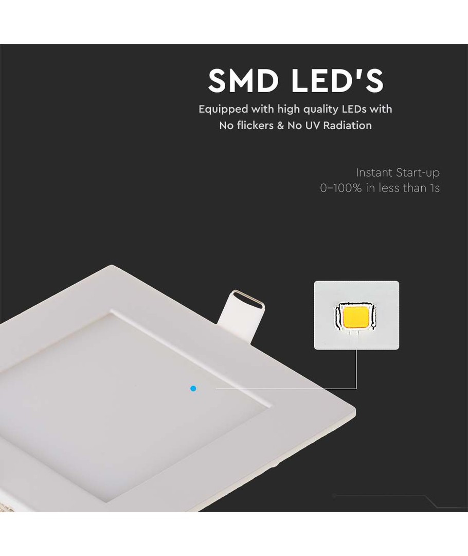 Dette kraftige LED-panelet med en effekt på 6W gir en imponerende lysstyrke på 490 lumen. Med en høy lysspredning på 120 grader, sikrer dette panelet en jevn og effektiv fordeling av lys i rommet.