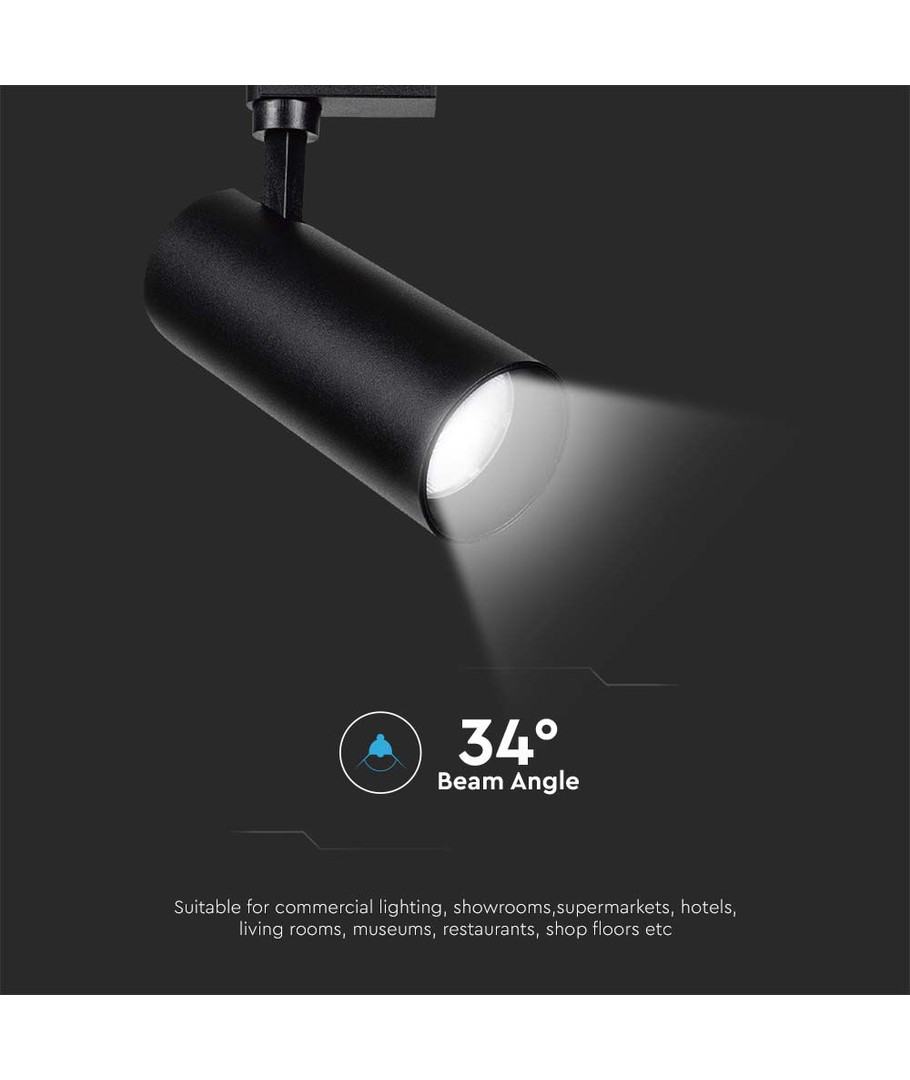 Designet med en praktisk lysvinkel på 34 grader, tilbyr den et fokusert lys perfekt for å fremheve spesifikke områder. Dette gir deg et kontrollert lysbilde som er perfekt for gallerier, butikker eller hjemme.