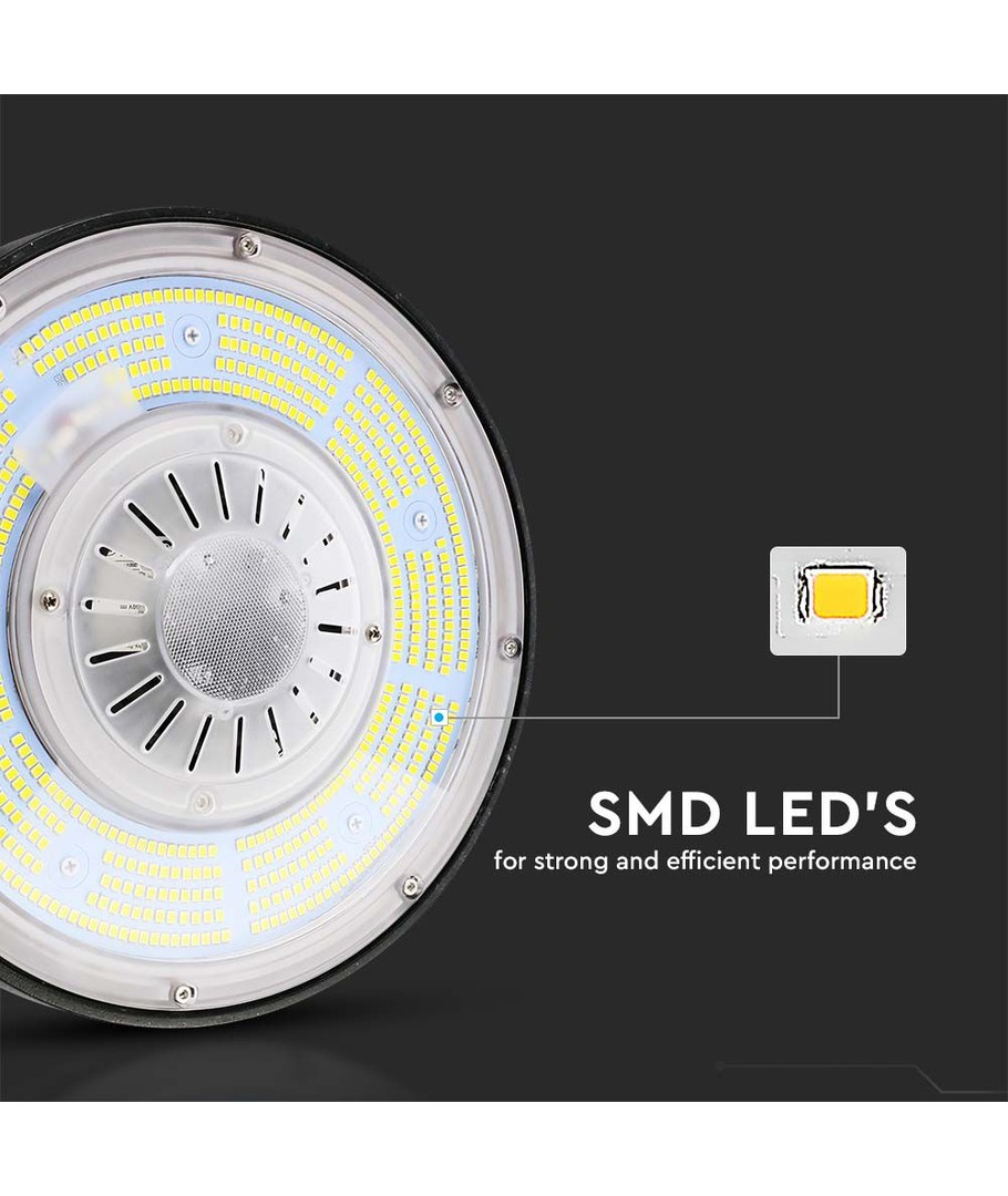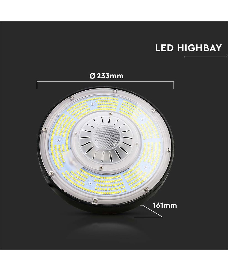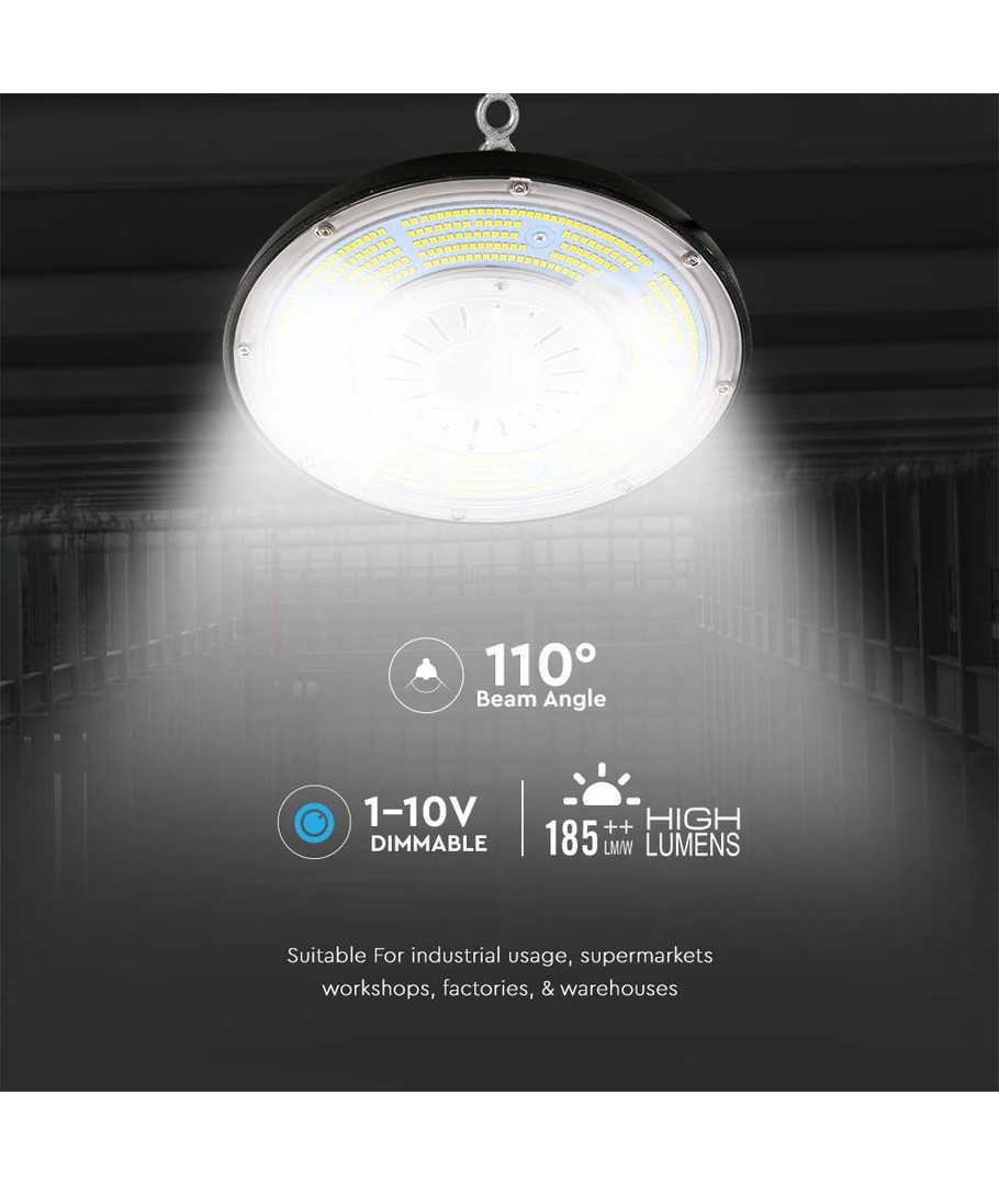 100W Highbay LED-lampe med høy effektivitet og dimbare funksjoner perfekt for industrielle miljøer.