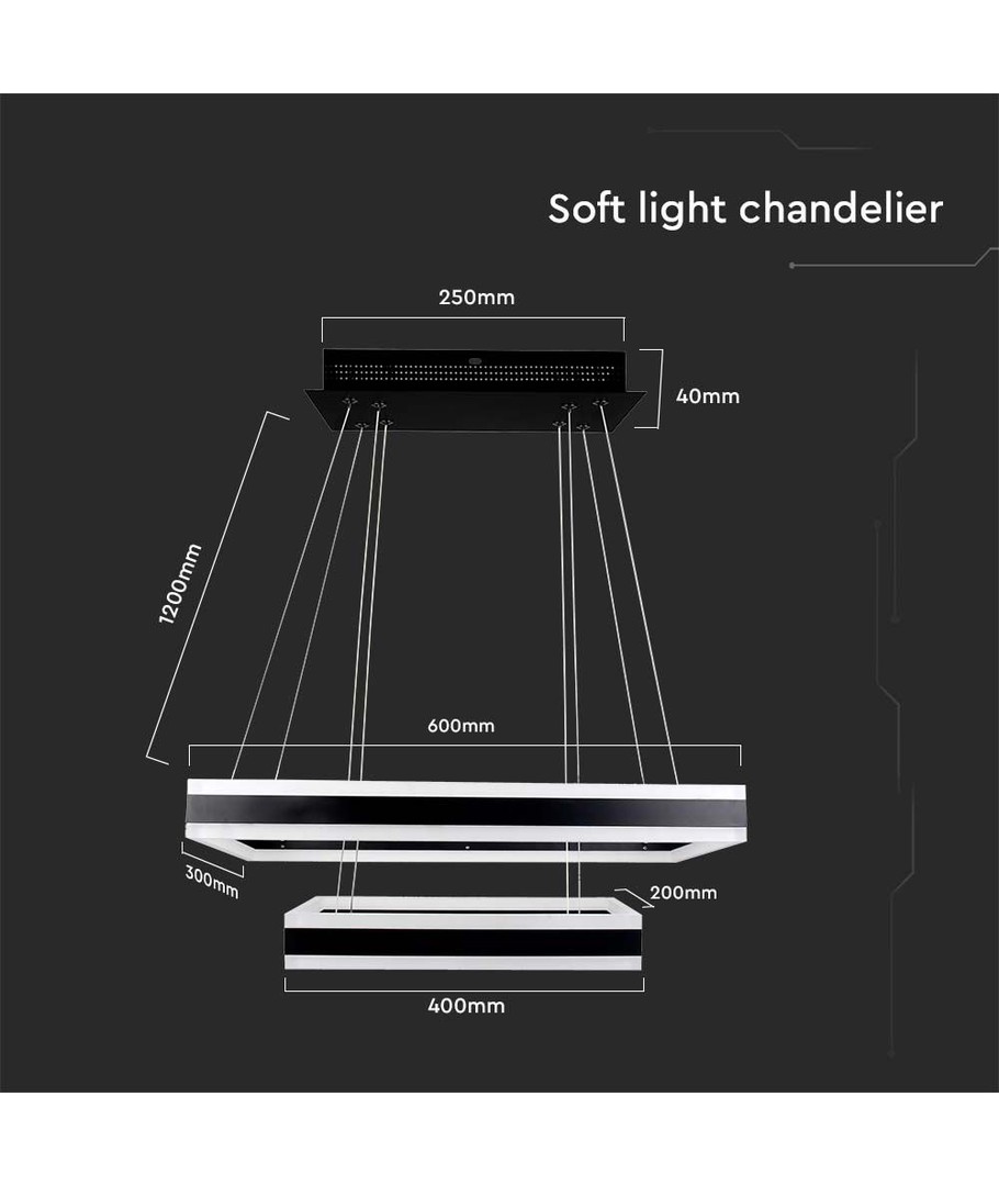 Med sitt moderne svarte design, vil denne lysekronen være et blikkfang i ethvert rom. Velg denne lysekronen for å bringe eleganse og funksjonalitet inn i ditt hjem. Monteringen er enkel, og den passer perfekt inn i ulike interiørstiler.