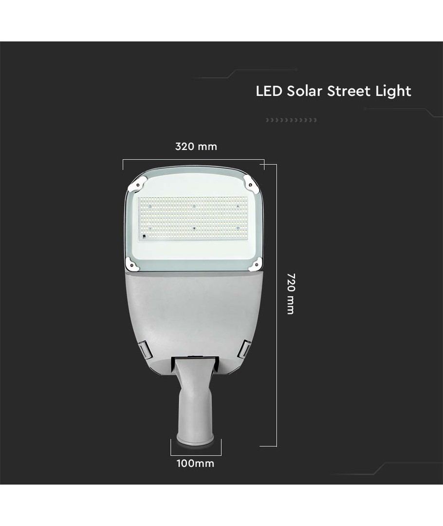 Dimensjonene på 720 x 100 x 320 mm gjør det enkelt å installere, samtidig som det sikrer at lyset dekker et vidt område. Dette gatelyset kommer med en integrert lyskilde som eliminerer behovet for separat pæreskift og vedlikehold.