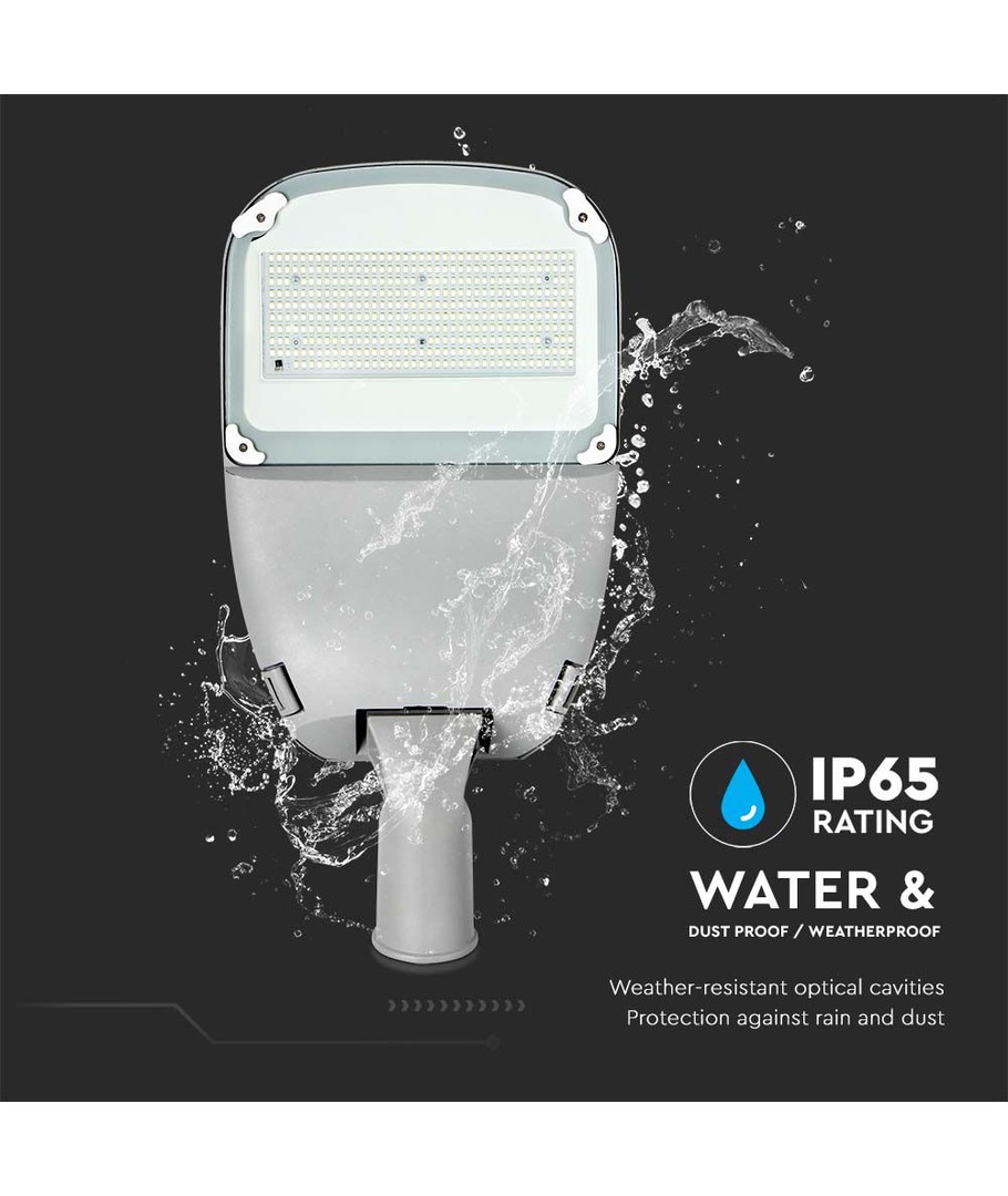 Med en klassifisering på IP65, er dette LED-gatelyset laget for å tåle vannsprut og regn, noe som gjør det perfekt for utendørs bruk. Det robuste designet sikrer langvarig ytelse, og med en 3 års produsent garanti, kan du være trygg på produktets varighet og effektivitet.