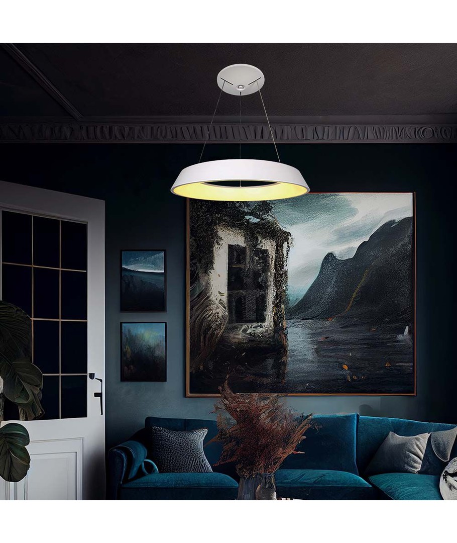 Denne stilrene designerlampen kombinerer funksjonalitet med moderne estetikk, ideell for ethvert rom som trenger et effektivt lysmiljø. Med sine 48W gir den en imponerende lysstyrke på 5000 lumen, og dens høye lysspredning på 360 grader sørger for at lyset fordeles jevnt i hele rommet.