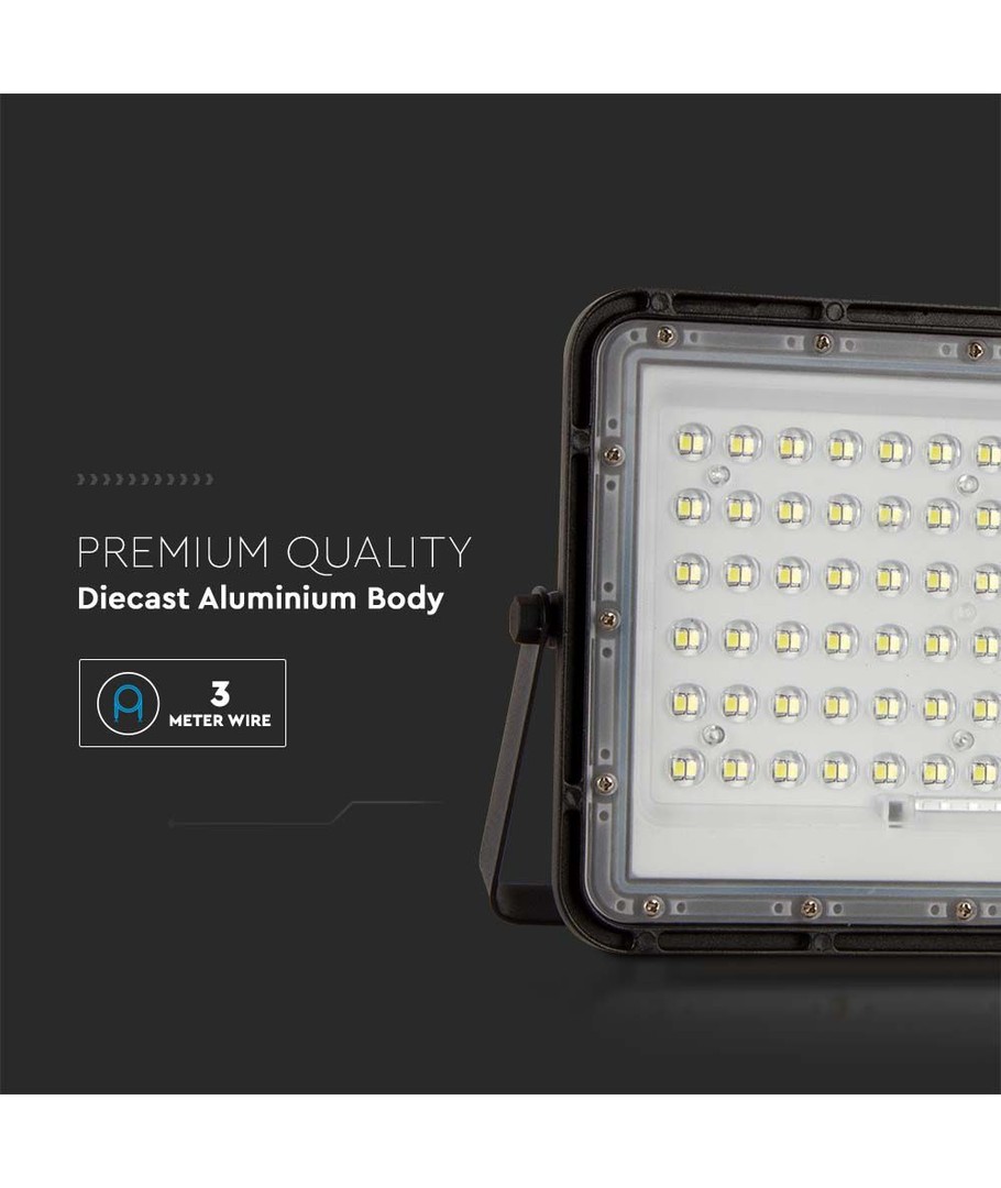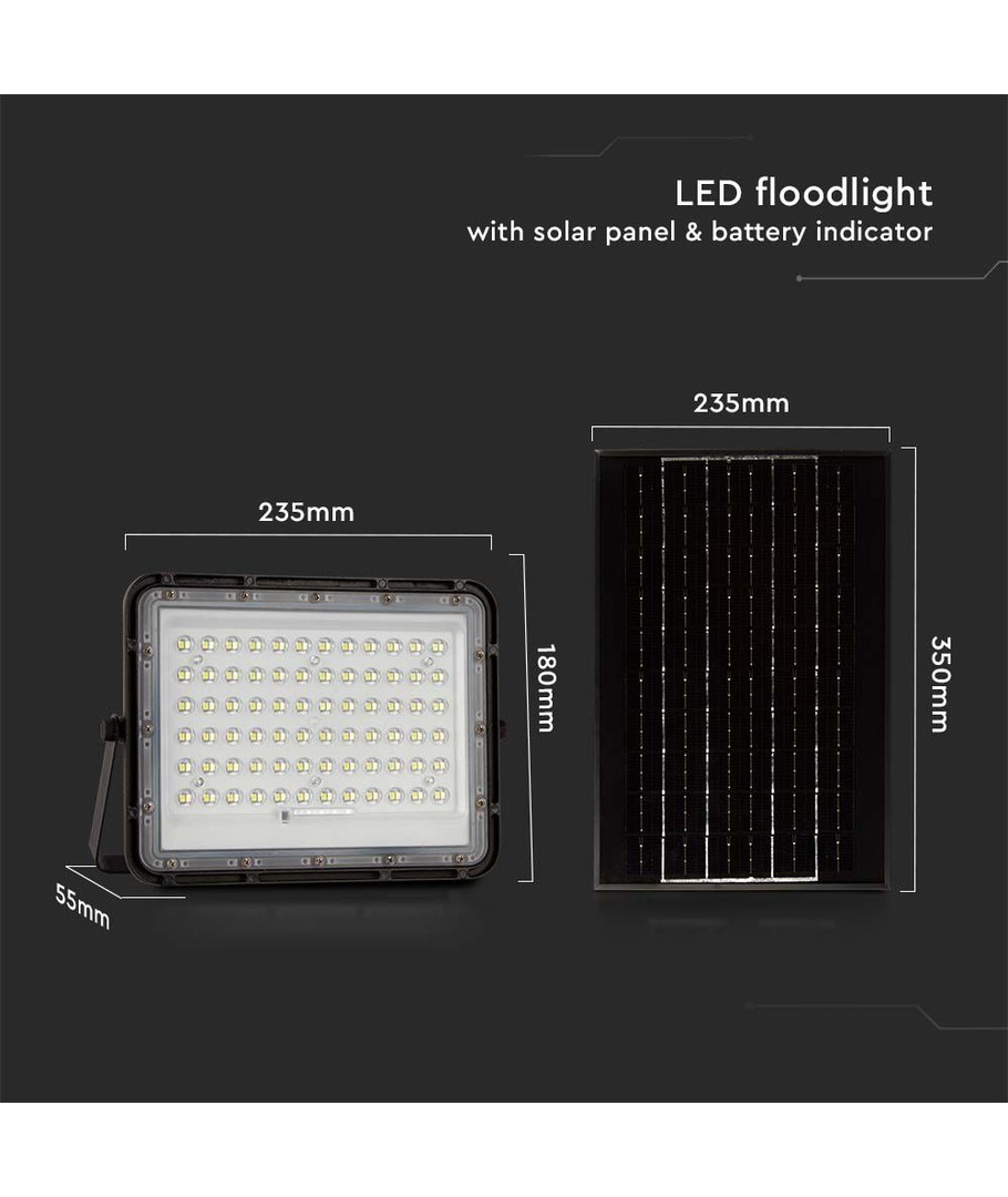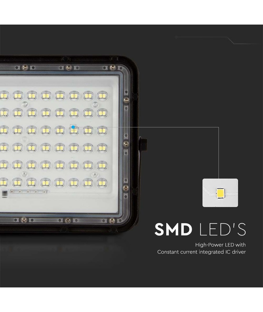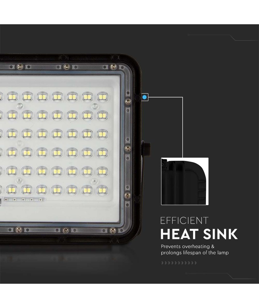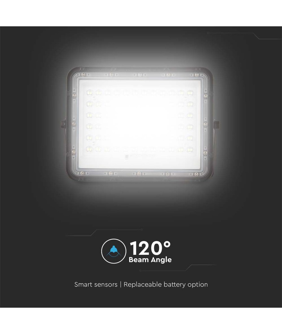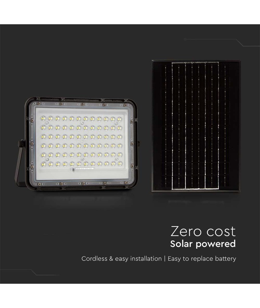 120W Solcelle LED lyskaster med panel - 1200lm, IP65, inkl. fjernkontroll, sort, utendørs V-TAC Utvid