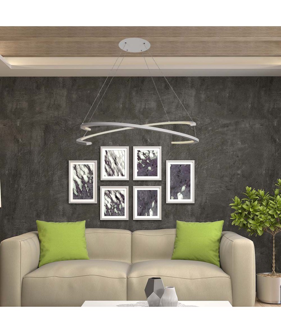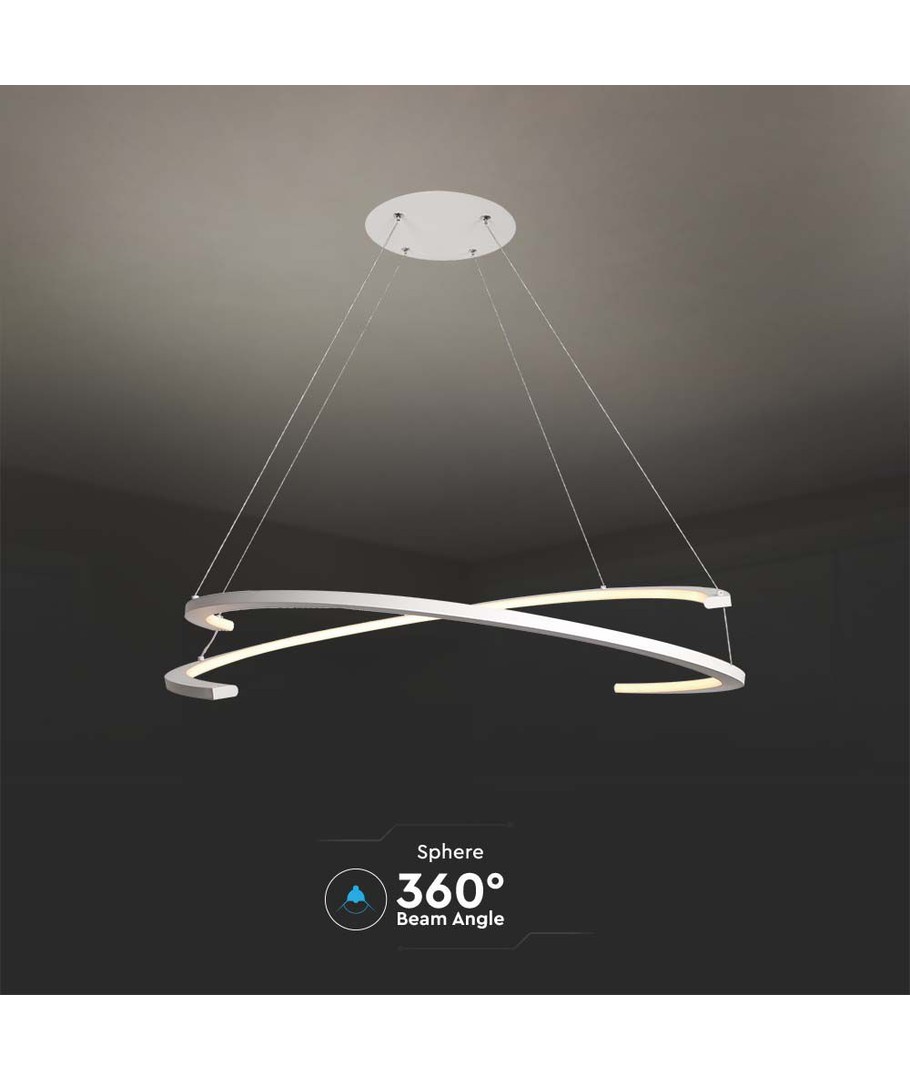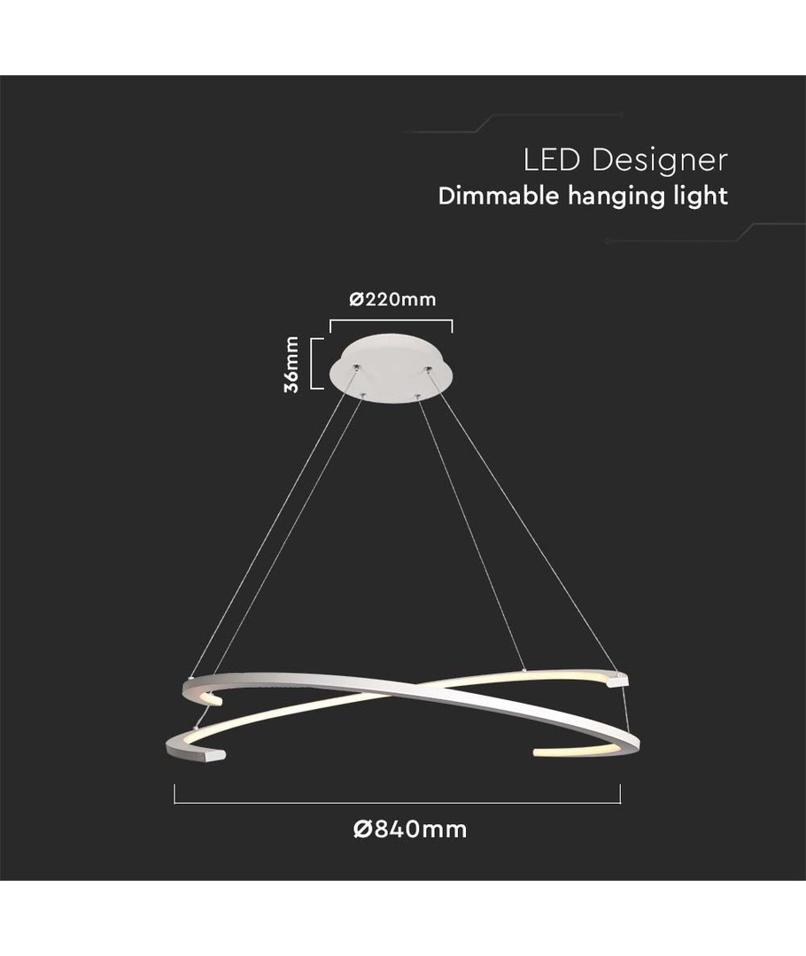 Lampens dimensjoner på 840 mm gir et imponerende uttrykk uten å være for overveldende. Kombinasjonen av hvit finish og et rent design gjør den til et dekorativt fokuspunkt i hjemmet.