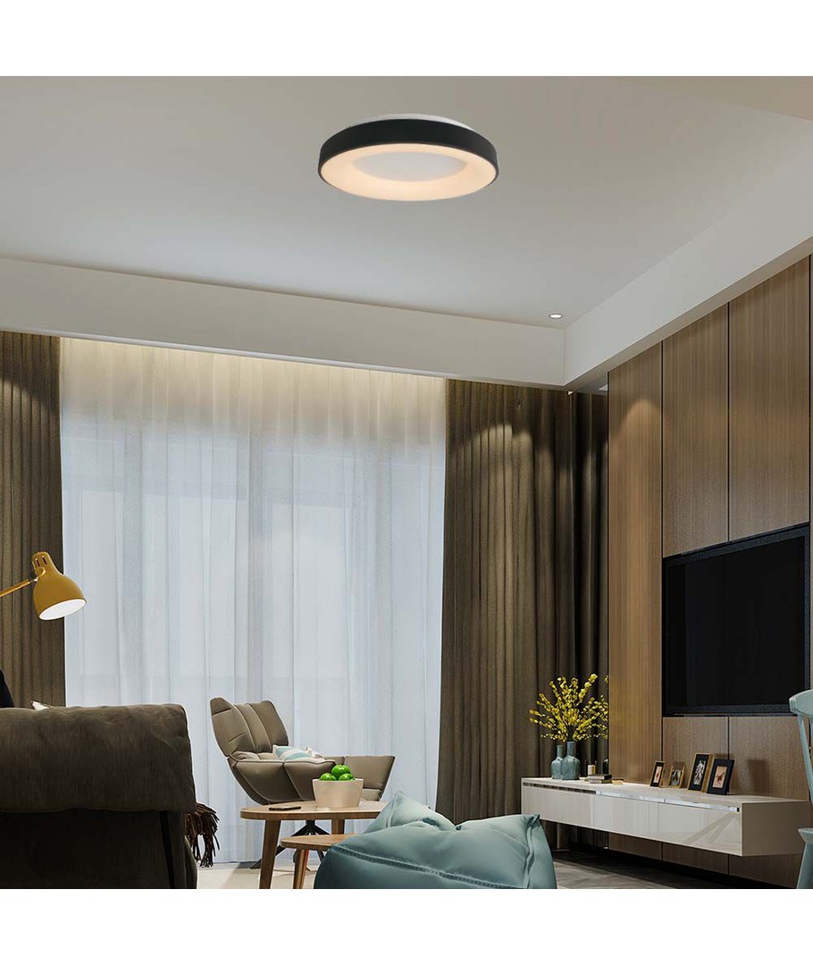 Med sitt tidløse svart hus og dimensjoner på Ø60xH9 cm, passer denne lampen inn i hvilket som helst interiør. Den er elegant og stilren, og fungerer som et dekorativt element i hjemmet.