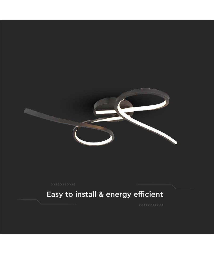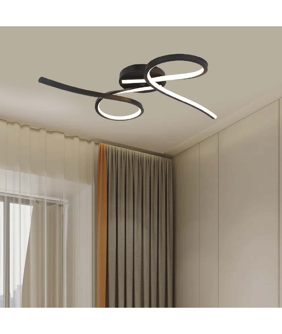 Den svarte lampekroppen er pulverlakkert, noe som gir den en moderne og stilren finish. Dette gir lampen et unikt utseende som passer perfekt i moderne interiører. De integrerte lyskildene sikrer at du ikke trenger å bekymre deg for å endre lyskilder ofte.