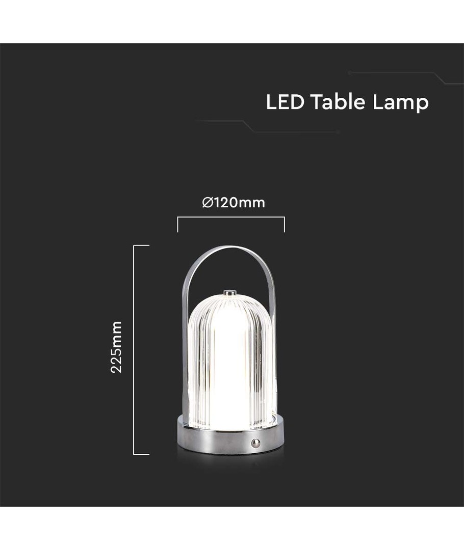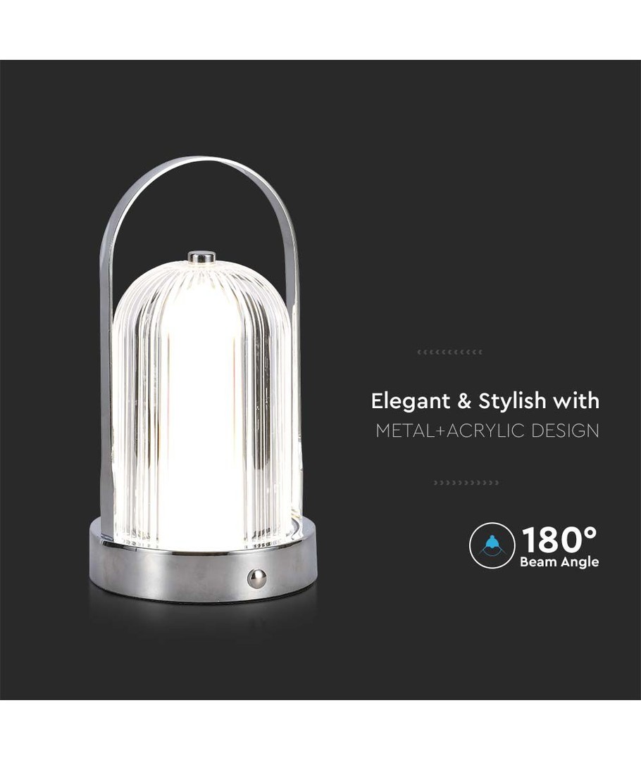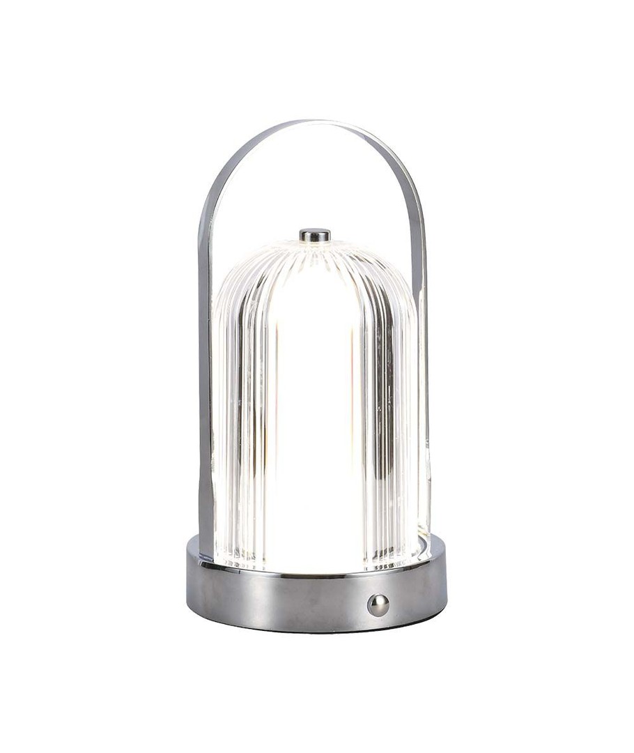 Utstyrt med et høykapasitets 1800mAh batteri, gir denne lampen langvarig lys uten behov for konstant lading. Den innebygde lyskilden betyr at du aldri behøver å tenke på bytte av lyspærer, mens det stilrene kromhuset sikrer at lampen ser flott ut i ethvert interiør.
