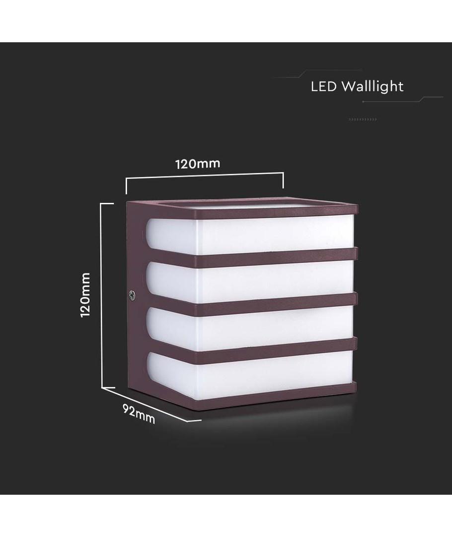 Vegglampens dimensjoner er 120 x 92 x 120 mm, noe som gjør den enkel å håndtere og montere på ulike overflater. Med en IP65 klassifisering, er lampen spesielt egnet for utendørs bruk. Den kan motstå vannsprut og regn, noe som gjør den pålitelig i forskjellige værforhold.