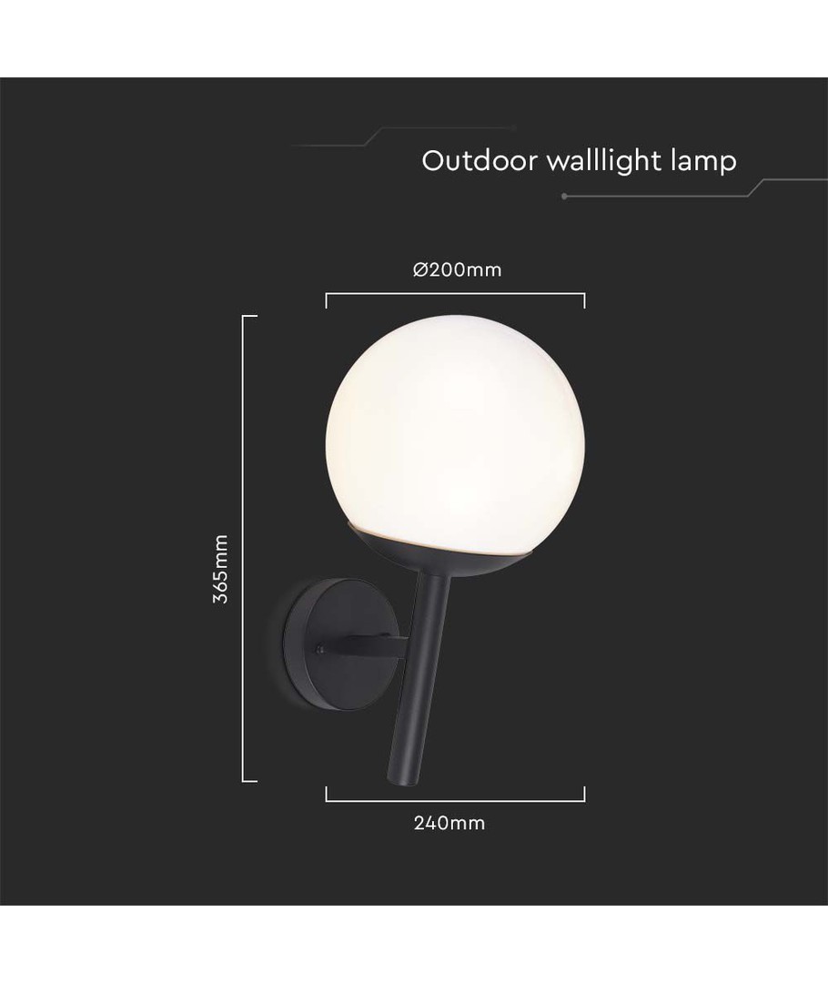 Gi hjemmet ditt et elegant løft med denne stilige vegglampen fra V-Tac Pro-serien. Den er designet med en lekker matt sort finish og en vakker opal plastkule som gir en myk og behagelig belysning.