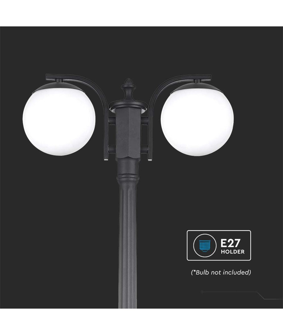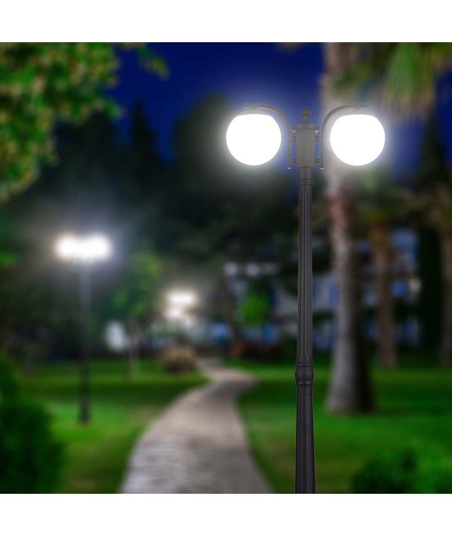 Gulvlampen kombinerer et moderne design med praktisk funksjonalitet for ethvert utendørs miljø.