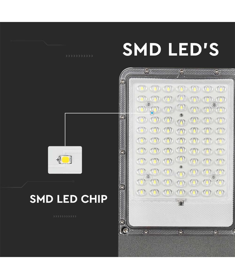 Dette er en LED Solargatelykt som er designet for å gi kraftig belysning med høy effektivitet. Med en lysstyrke på 3500 lumen og en imponerende lysspredning på 120 grader, gir denne lykten en jevn og bred belysning av området.
