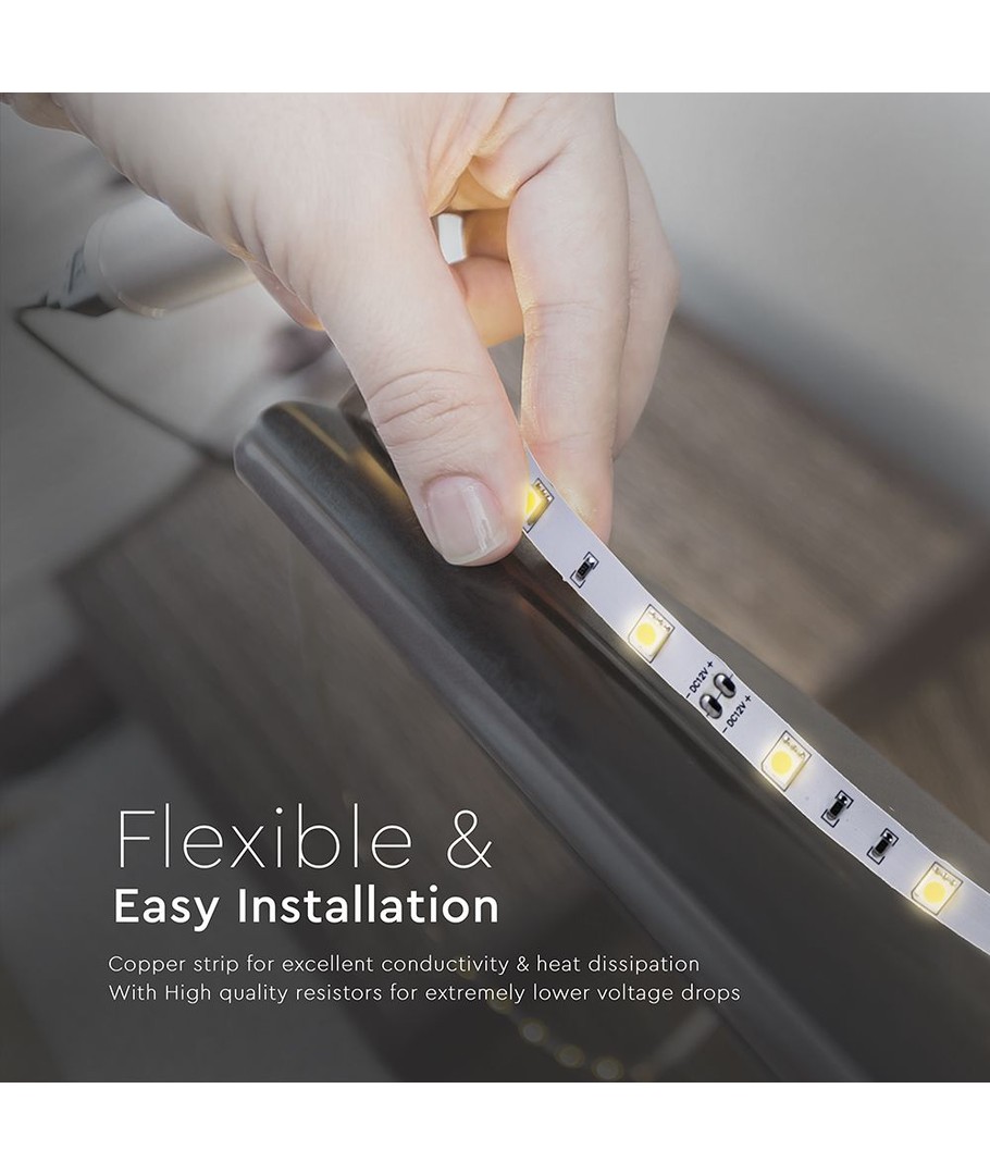 Denne LED-stripen er enkel å sette opp og er ideell for innendørs bruk der de ikke vil bli utsatt for fuktighet. Uansett hvilket rom du ønsker å belyse, vil disse LED-stripslysene sikre et naturlig og behagelig lys som vil forbedre atmosfæren i hjemmet ditt.