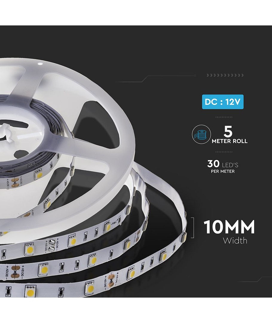 Disse 30 LED-stripslysene er designet for å gi høy lyskvalitet og en behagelig belysning i hjemmet ditt. Med en RA-verdi på 80-85, vil de fremheve farger på en naturlig og vakker måte, hvilket er ideelt for de fleste belysningsbehov.