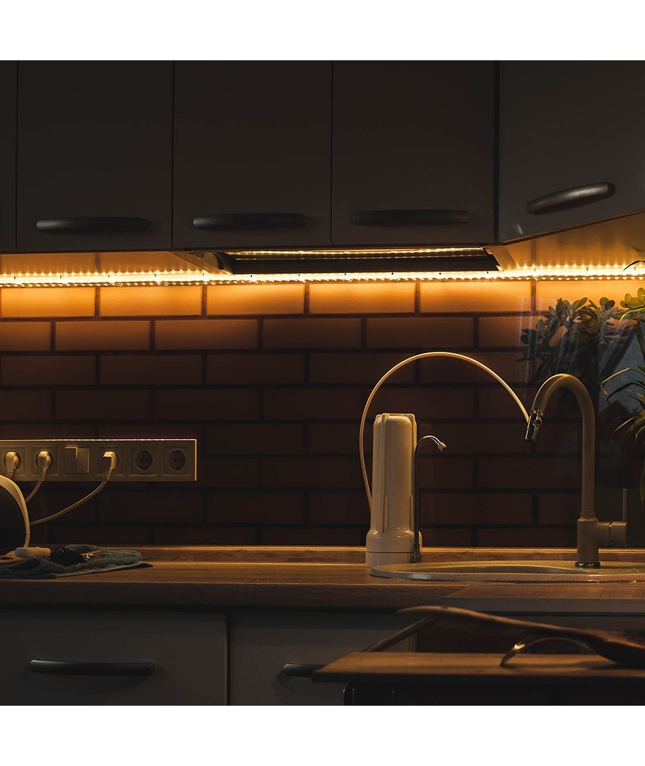 Denne LED stripen gir en varm hvit lysfarge på 3000K. Dette bidrar til å skape en behagelig og avslappende atmosfære som gir en koselig opplevelse i ditt hjem eller på arbeidsplassen. Det varme lyset er perfekt for å skape en innbydende stemning.