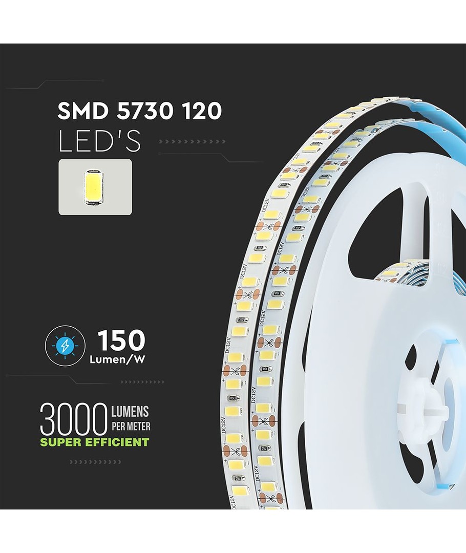 Opplev enestående belysning med vår LED stripe på 18W som gir en imponerende lyskvalitet. Dette produktet er utstyrt med 120 LED og gir et lys med en RA-verdi på 90-95, noe som betyr at det produserer et levende og naturlig lys. Dette gjør det ideelt for bruk der fargegjengivelse er kritisk.