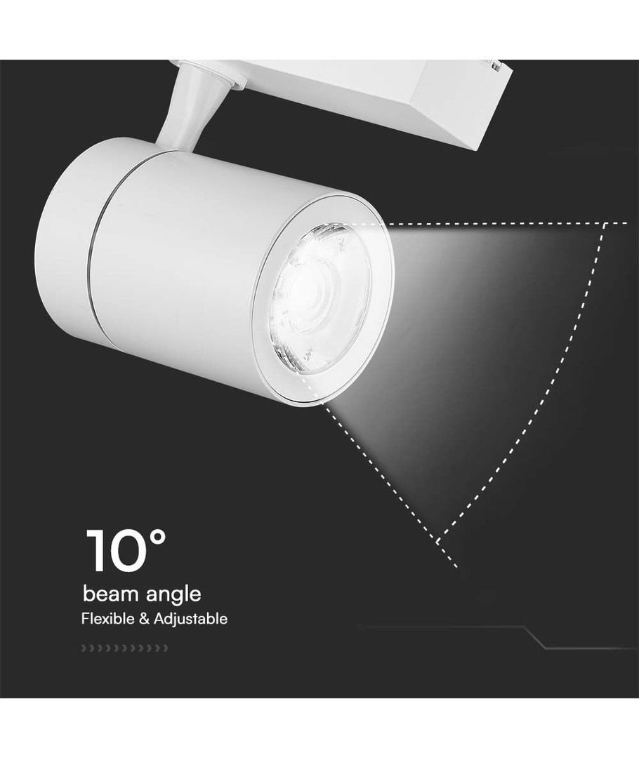 Oppgrader belysningen din med denne høytytende LED Skinne-spot, som kombinerer effektivitet og stil for enhver moderne innredning. Med en effekt på 35W og en imponerende lysstyrke på 3000 lumen, er denne spotlighten perfekt for de som ønsker et fokusert og kraftig lys.