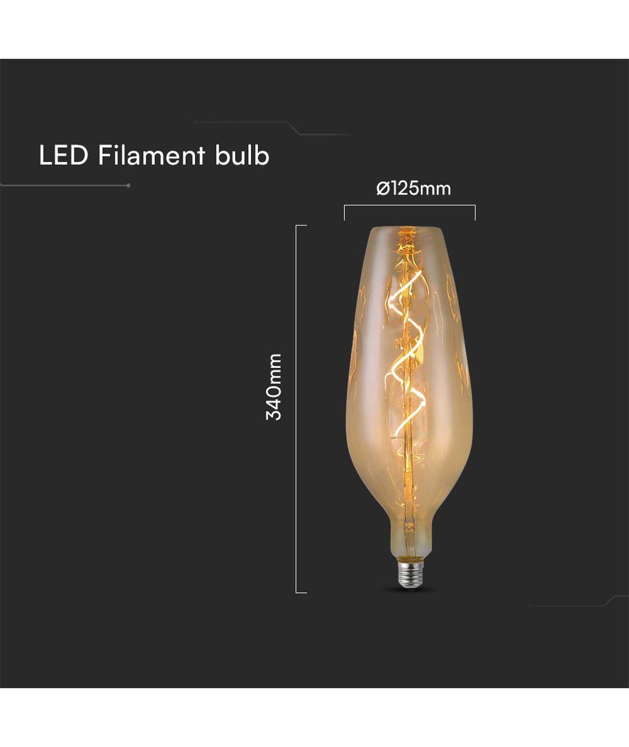 Med dimensjoner på 340 x 125 mm er denne lyspæren både stilfull og tilgjengelig for ulike typer lamper. Den er utstyrt med IP20-klassifisering, noe som betyr at den ikke er vannbestandig og derfor bør brukes i tørre rom.