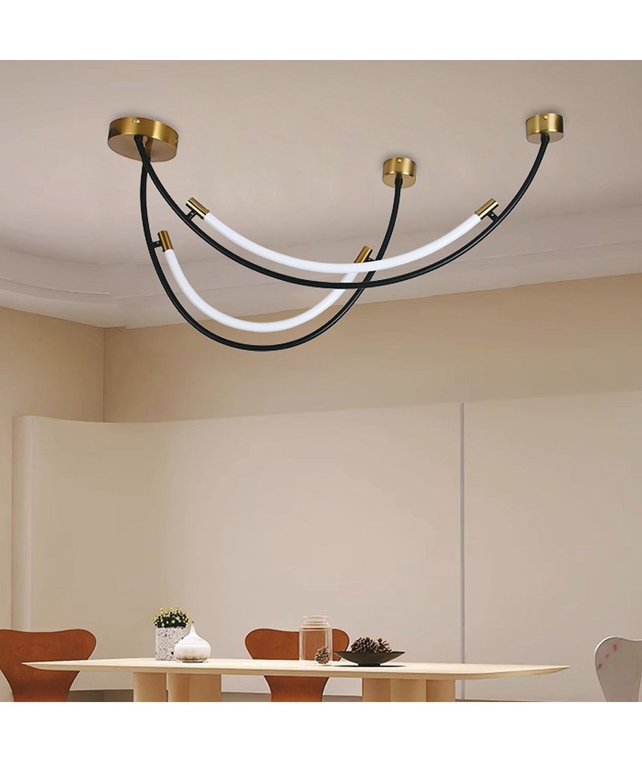 Skap en uimotståelig atmosfære i ditt hjem med denne stilige 20W hengelampen. Den har en elegant kombinasjon av sort og messing, som gir et moderne preg til ethvert rom.