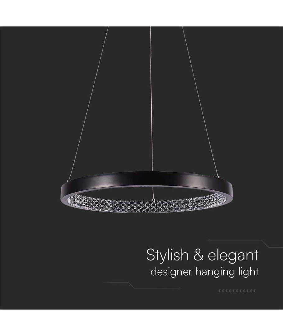 Opplev en perfekt kombinasjon av stil og funksjonalitet med denne vakre 19W hengelampen, designet for å gi ditt hjem et moderne preg. Med sitt svart finish og krystall akryl detaljer, passer den sømløst inn i ethvert interiør.